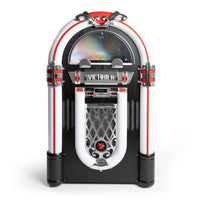 Q: How should I care for the Victrola Mayfield Jukebox?A: To care for your Victrola Mayfield Jukebox, keep it in a dry environment, avoid exposing it to extreme temperatures, and dust the surface regularly to maintain its appearance. Additionally, handle vinyl records properly and clean the turntable's stylus gently to ensure optimal performance.