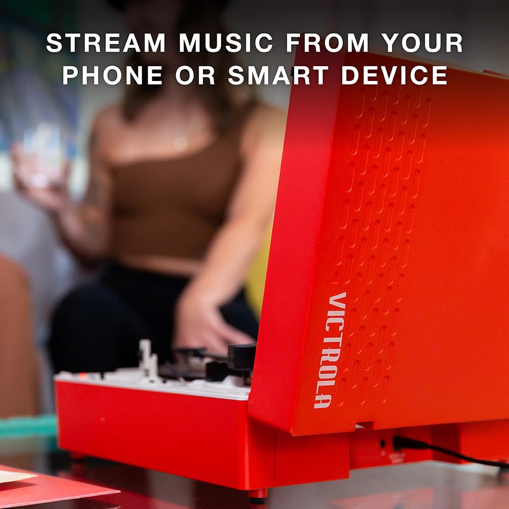 At Victrola, Our Mission Is To Create Lifelong Music Memories. As Vinyl Lovers, We Strive To Innovate And Develop Products That Can Be Enjoyed For Years To Come-Introducing The Re-Spin. The Re-Spin Is The Classic 'Suitcase' Record Player Reimagined For Today'S Vinyl Fans. Made From 25% Recycled Plastic And Featuring A Built-In Custom-Tuned Bluetooth Speaker And Bass Radiator Enclosure, The Re-Spin Is The Best-Sounding Turntable In Its Class, With 3X The Bass. The Re-Spin Features A Ruby Stylus And A Removable Dust Cover That Allows You To Display Five Albums. With Victrola 3-Way Technology, You Can Play Your Favorite Vinyl, Stream From Your Smart Device With Bluetooth Connectivity, Or Stream Your Records To Any External Bluetooth Speaker With Vinyl Stream Technology.