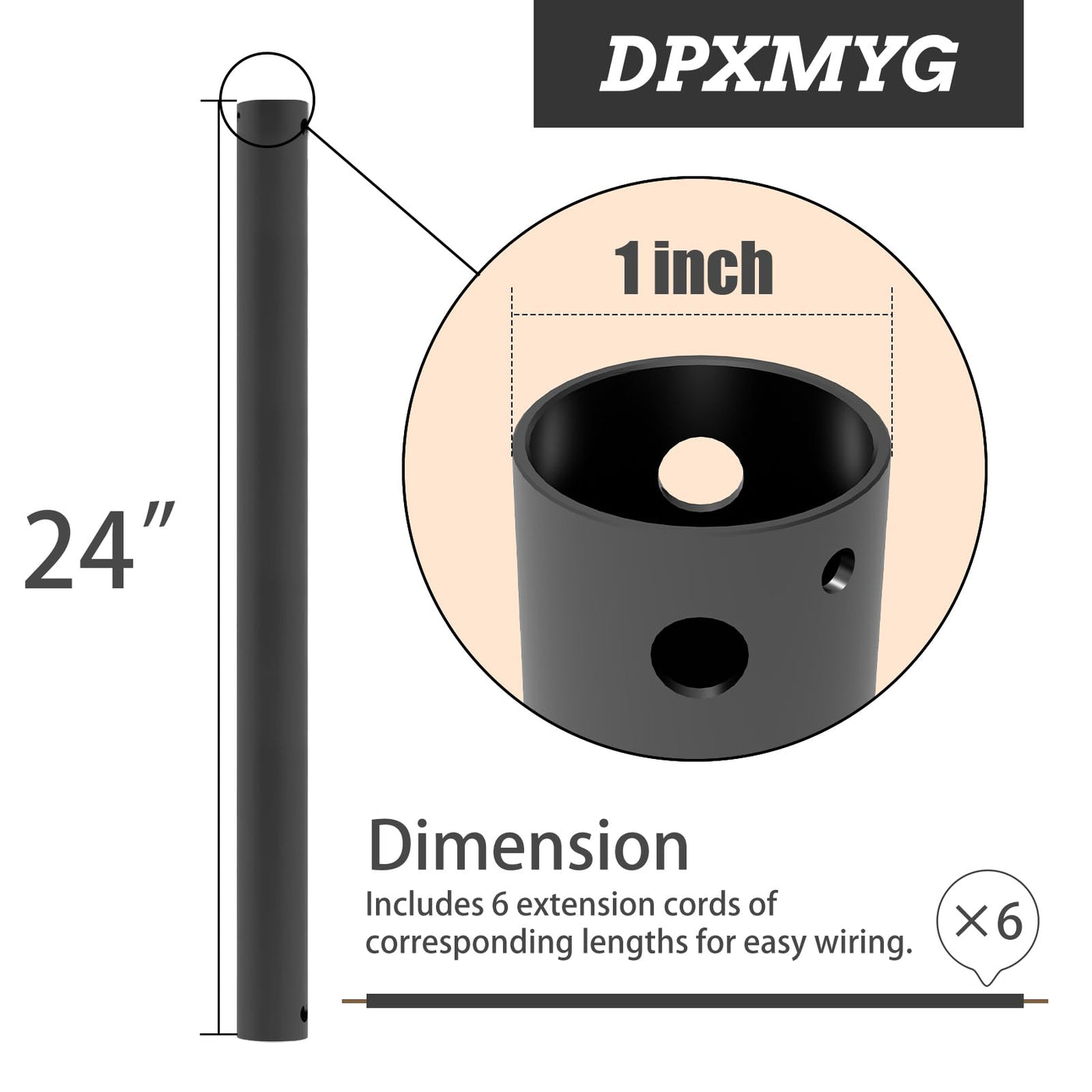 Dpxmyg 16 Inch Ceiling Fan Downrod With Extension Cord, Black Downrod For Ceiling Fan, 1 Inch Outside Diameter, Ceiling Fan Boom