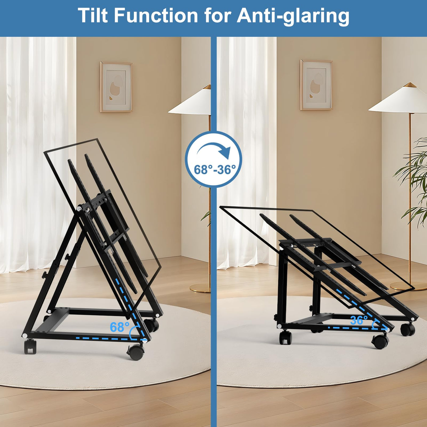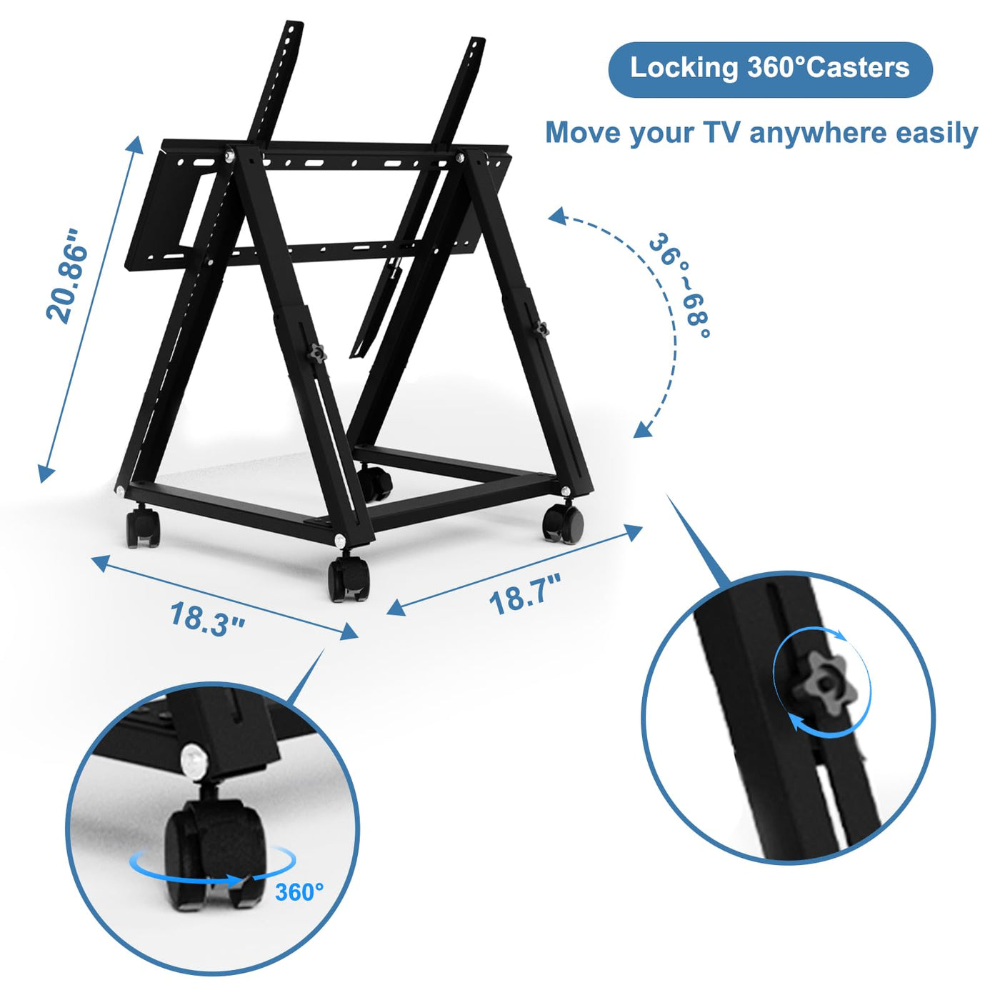 Q: Is the Duiliuu mobile TV stand easy to move around?A: Absolutely! The stand is equipped with heavy-duty 360° moving casters, making it easy to roll from one location to another. All four casters also have brakes, allowing you to lock the stand in place when needed.