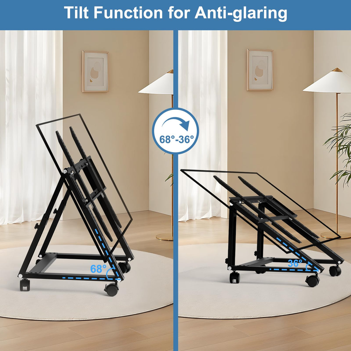 Q: Can I adjust the viewing angle of the TV on this stand?A: Yes, the Duiliuu TV stand features an adjustable mounting bracket that allows for tilting the TV up and down between 36 degrees and 68 degrees. This helps to avoid glare and ensures an optimal viewing angle.