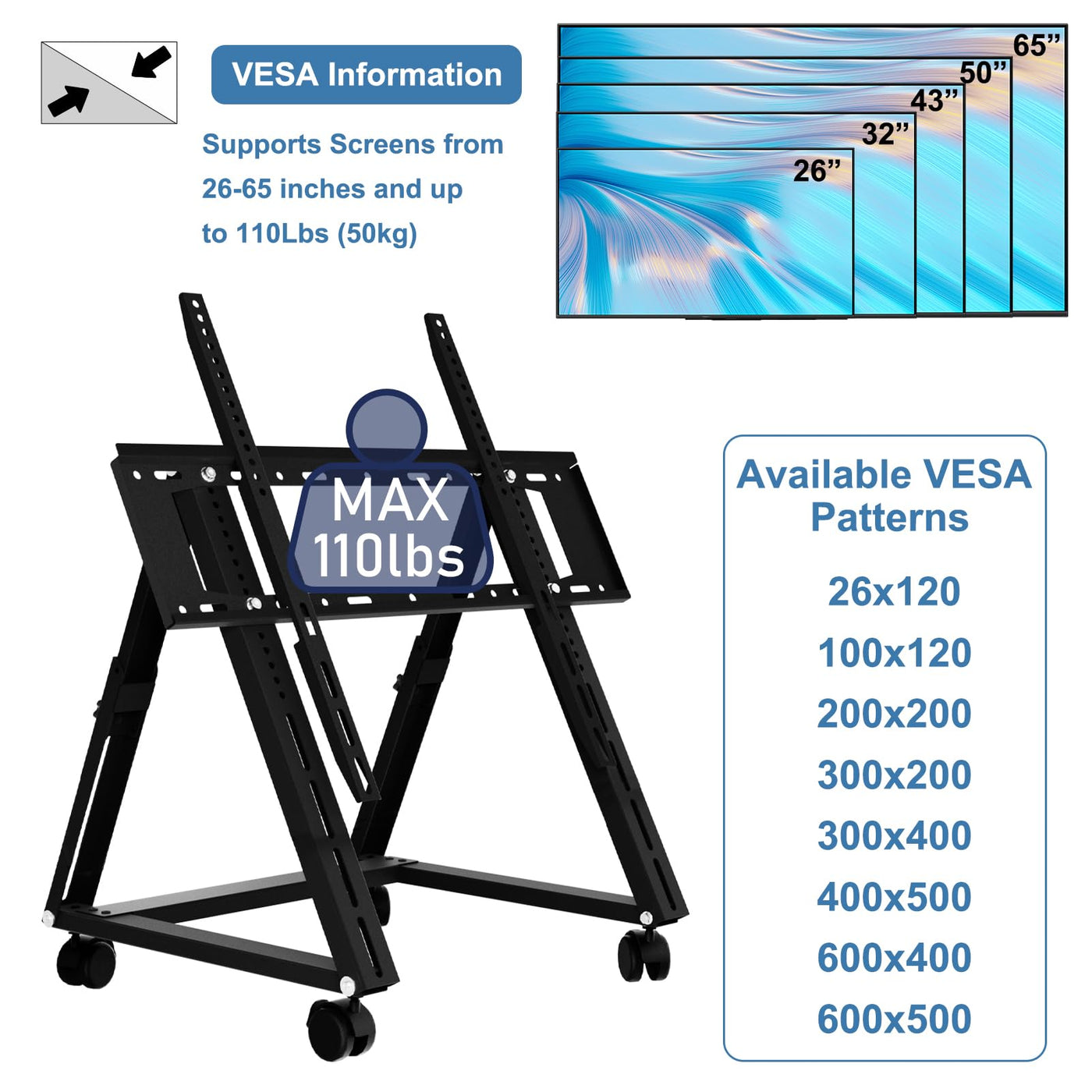 Q: What sizes of TVs are compatible with the Duiliuu Low Height Mobile TV Stand?A: The Duiliuu Low Height Mobile TV Stand is designed to accommodate TVs ranging from 26 to 65 inches in size. It supports a maximum weight of 50KG, making it suitable for a wide variety of flat-screen TVs.