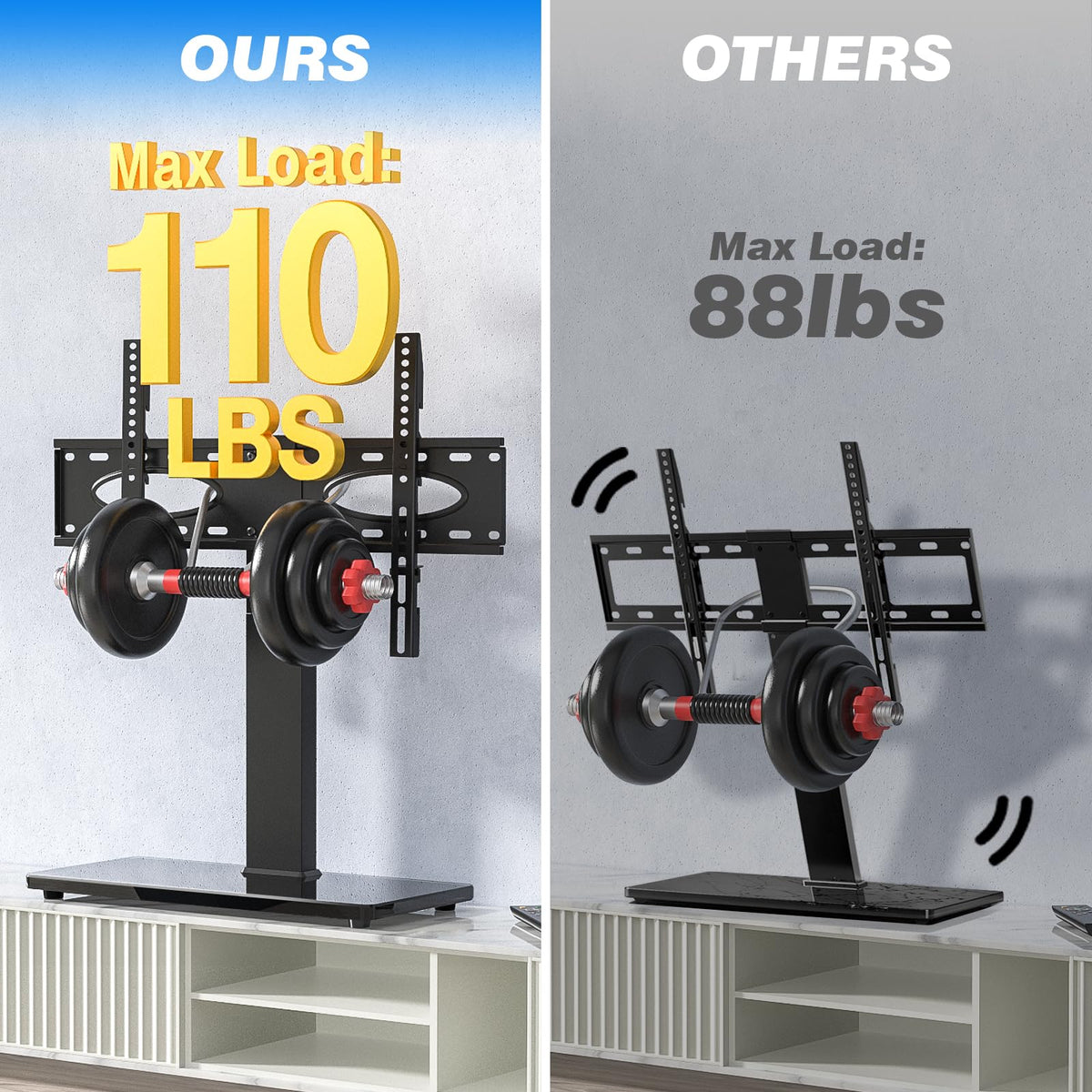 Brand: Rfiver ?6 Ways Of Adjustment Function Make You To Enjoy The Different Heights Of Your Tv. ?Cable Management System Hides All Your Cords Down The Back Panel. ?Made Of Heavy Duty Steel Stand And Thick Enough Tempered Glass Base, This Stand Easily Hold Your Television With Safety And Stability, And You Don'T Need To Drill Holes On Your Wall, Placing Tv Wherever You Want. ?Swiveled From -30 To +30, You Can Watch Tv By Different Viewing Angle. ?Dimension Of Tempered Glass Base: 16.5'' X 11''. ?Tempered Glass Thickness: 8Mm. ?Weight Capacity Of Tv Up To 110 Lbs. ?Fit Tvs From 37'' To 75''. Package Included: 1 X Swivel Tabletop Stand 1 X Assembly Instruction ??Should You Have Any Concerns, Our Friendly Usa Local Customer Support Team Will Reply You In 12 Hours.