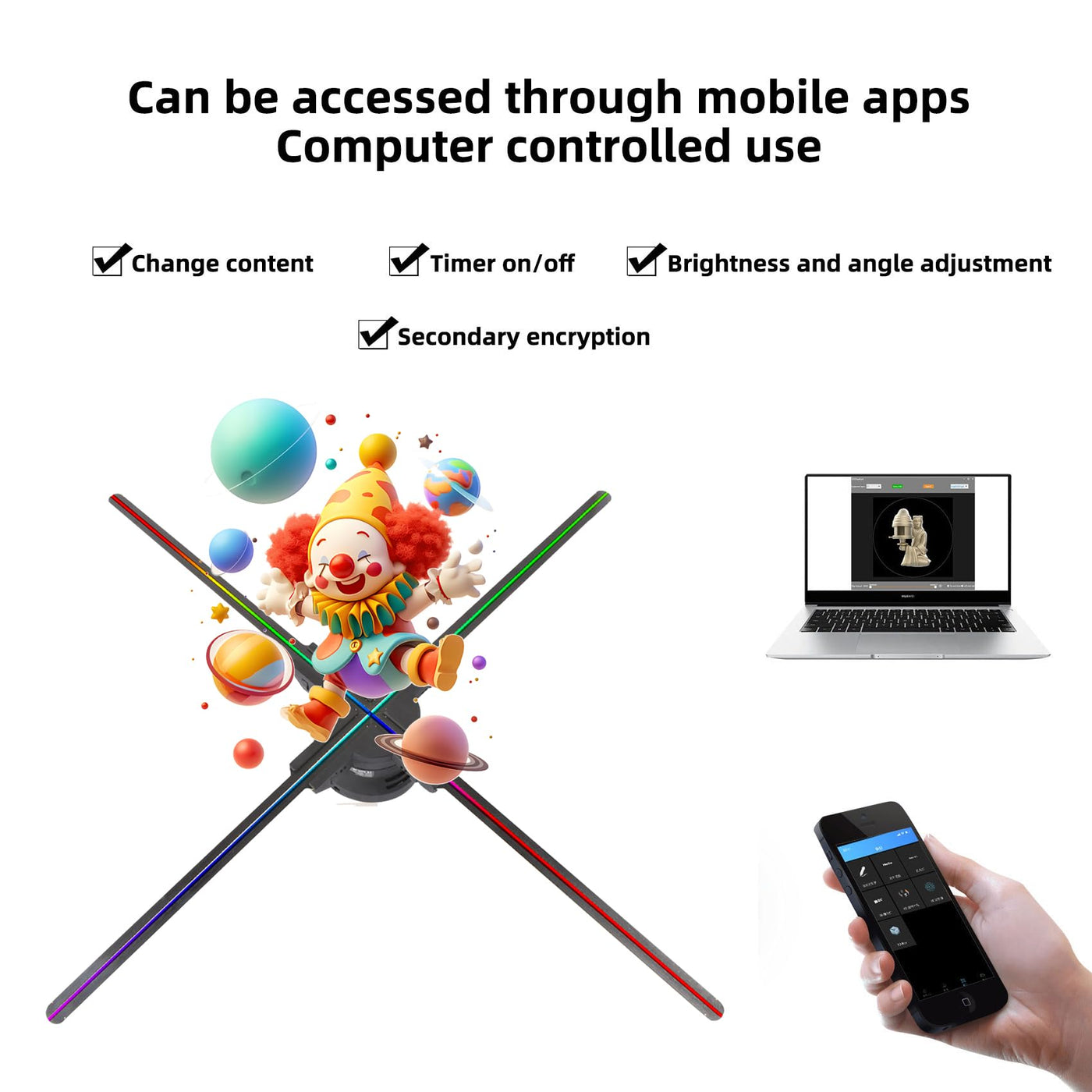 3D Hologram Fan, 25.6 Inch Hologram Projector Screwless Led Lights Hd Led 2000*1444Px Resolution With App And Wifi, Remote Contr