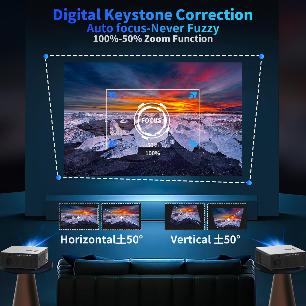 4K Projector Max 500''Display,1000Ansi Projector 4K Wifi And Bluetooth,Native 1080P Outdoor Projector Supprot 50%Zoom.Ppt.4P/4D