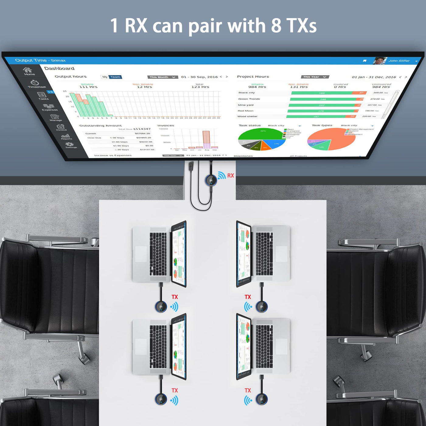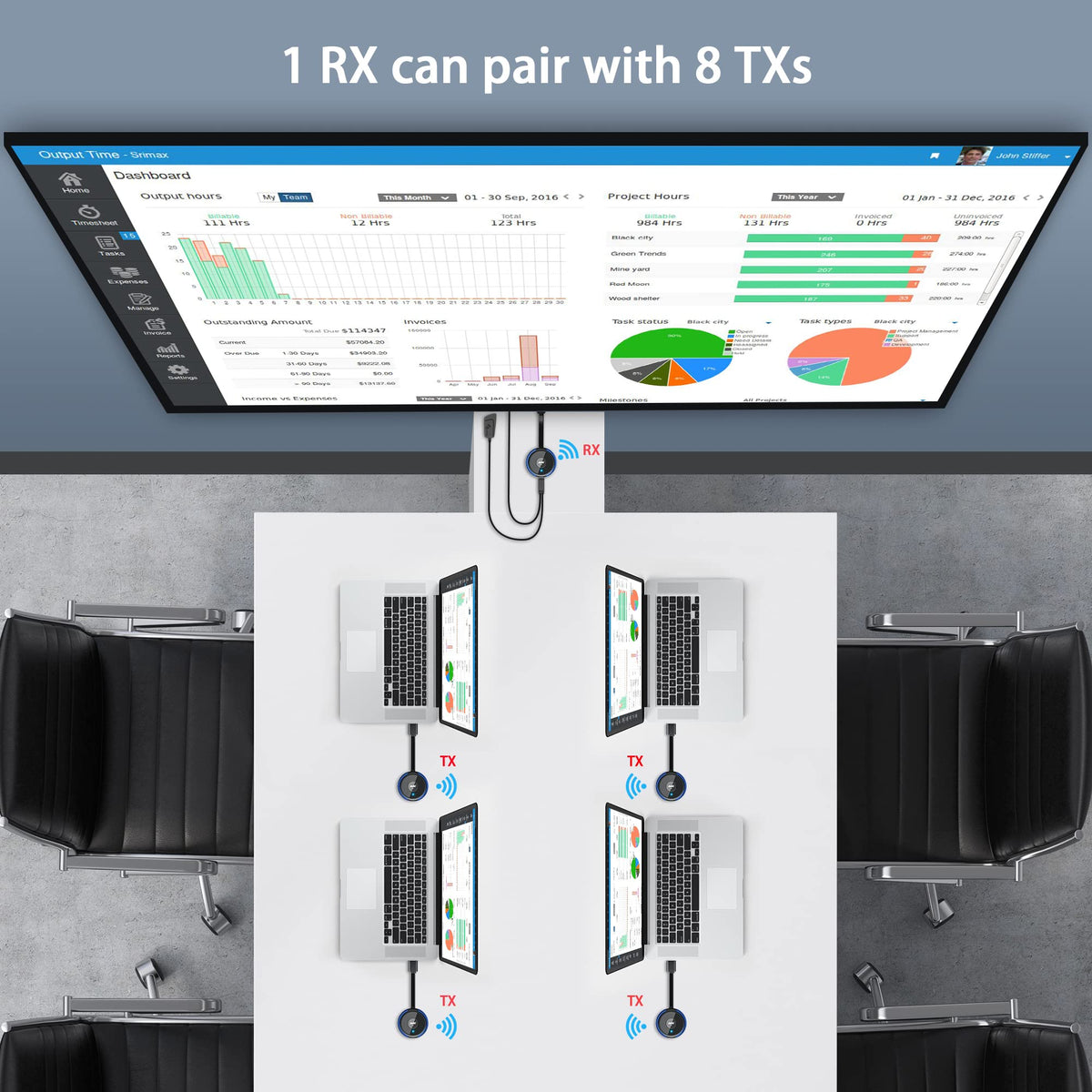 Q: Can I connect multiple transmitters to one receiver?A: Yes, one receiver can be paired with up to 8 transmitters. The pairing process for each transmitter is the same, ensuring easy switching between devices.