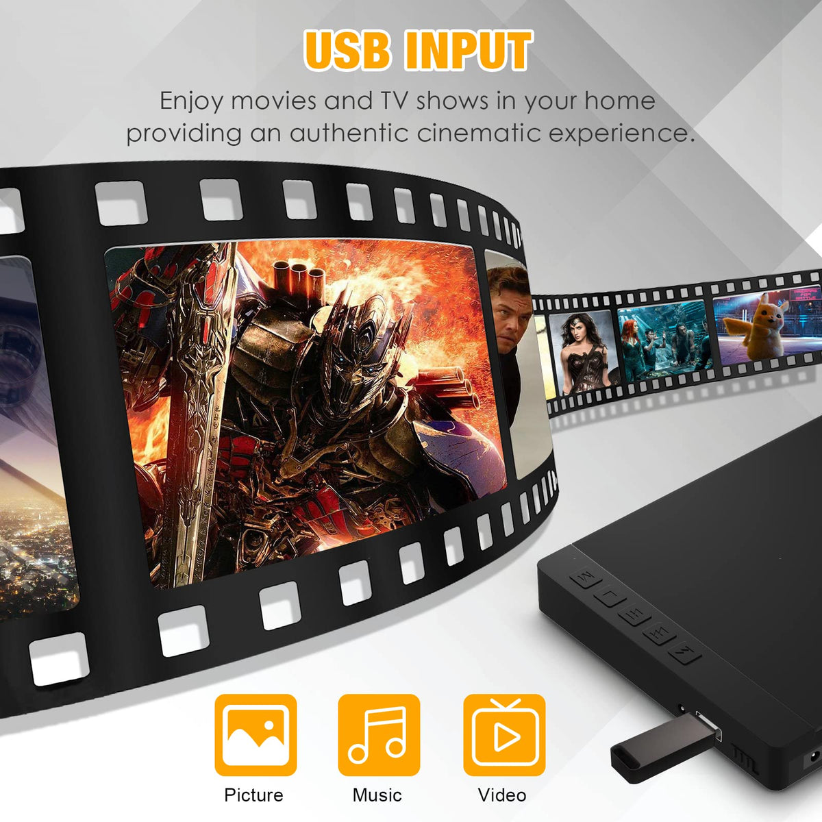 Q: Can I use USB devices with this DVD player?A: Yes, the DVD player features a built-in USB 2.0 port that allows you to directly play audio and video files from a USB stick. However, it supports USB Flash Drives up to 16GB and does not support USB 3.0 or MP4 file playback.