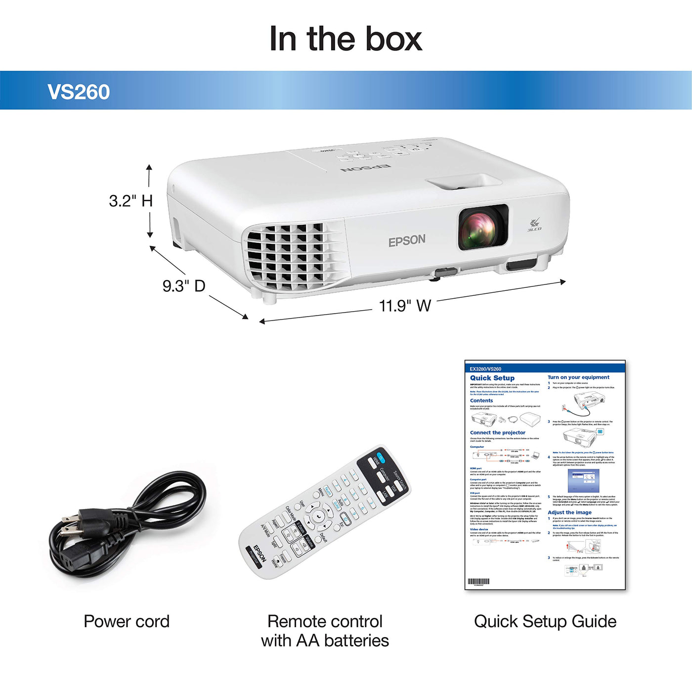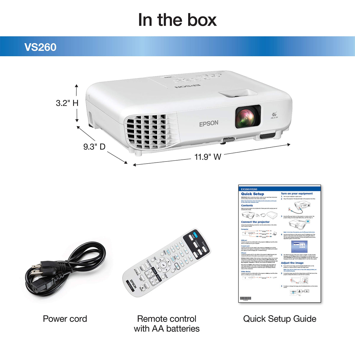 Epson Vs260 3 Chip 3Lcd Xga Projector, 3,300 Lumens Color Brightness, 3,300 Lumens White Brightness, Hdmi, Built In Speaker, 15,