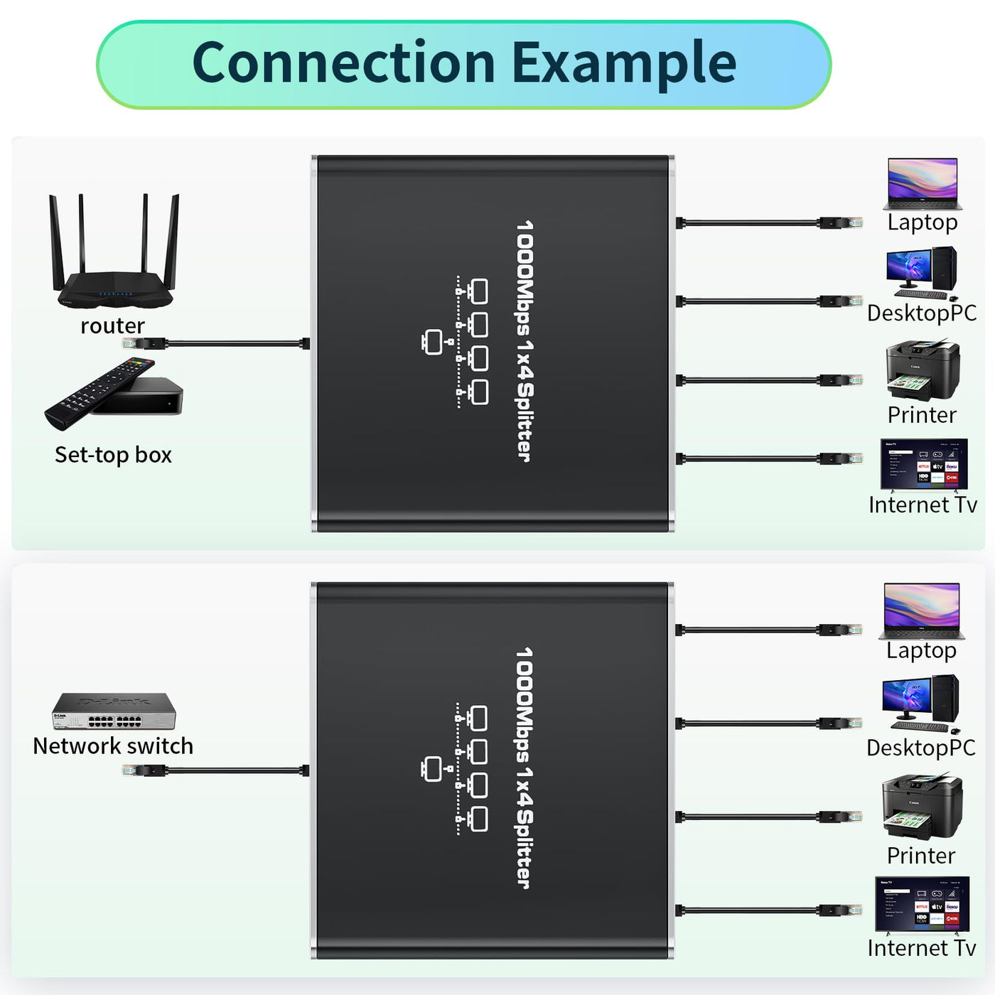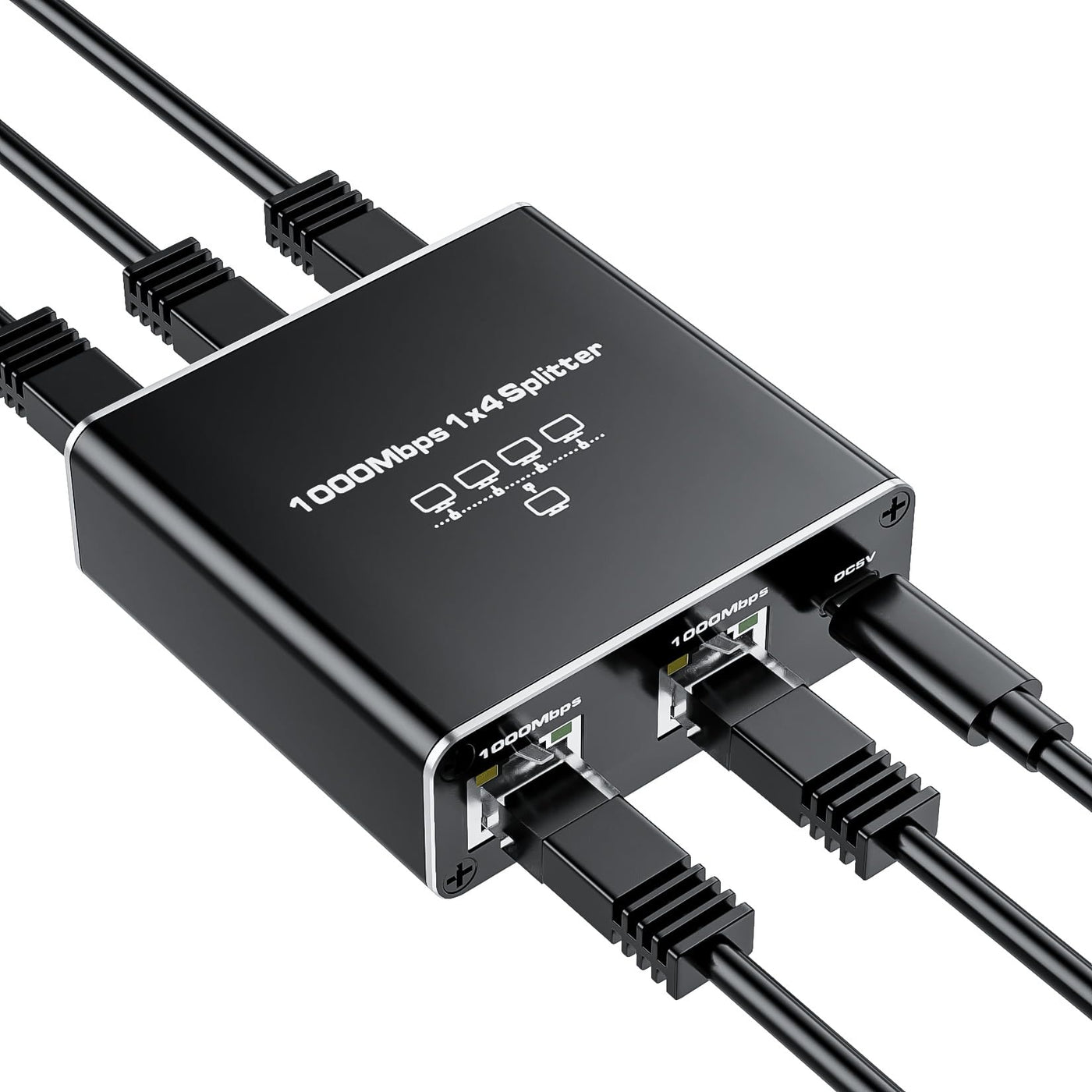 Ethernet Splitter 1 To 4, 1000Mbps Rj45 Ethernet Cable Splitter With Power Cable