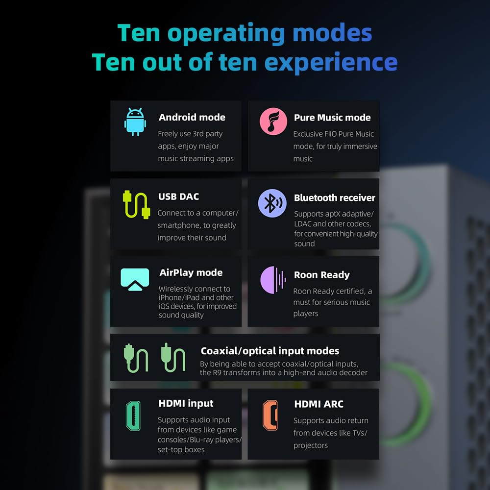 Fiio R9 Android Media Streamer, Network Player, Hdmi/Mqa Full Decode, Usb Dac, Dsd512 Pcm768Khz/32Bit Bluetooth 5.0, 6Hd Touchsc