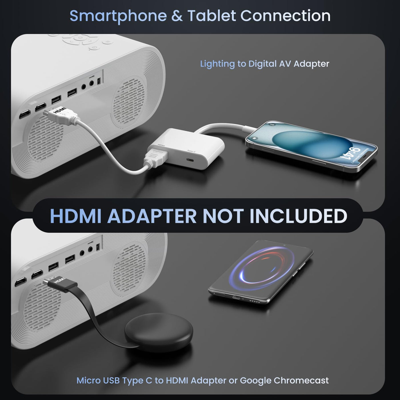 Hompow Projector, Native 1080P Full Hd Bluetooth Projector With Speaker, Outdoor Portable Movie Mini Projector Compatible With L