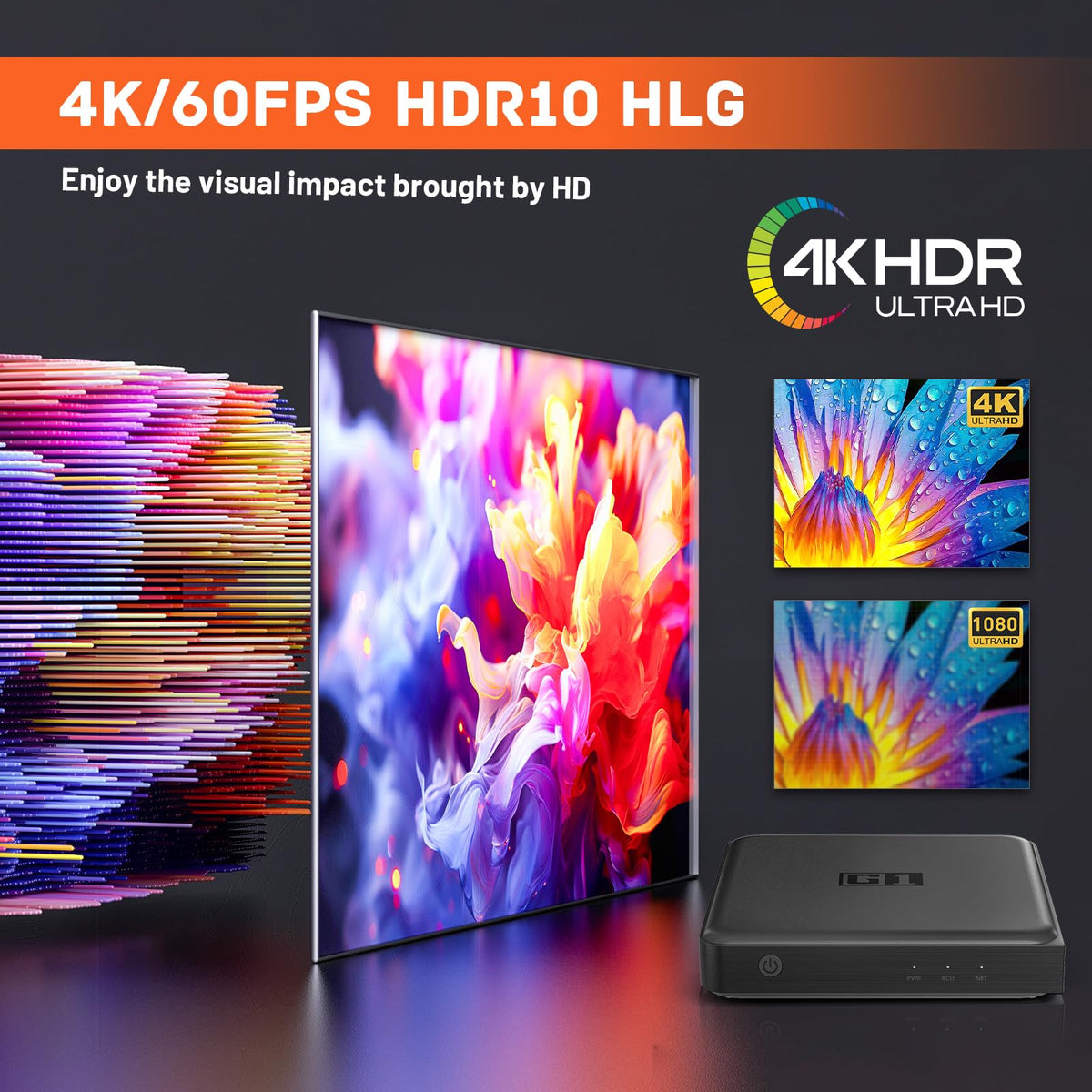 Q: How does the Kinhank G1 enhance my home entertainment experience?A: The Kinhank G1 provides an immersive audio-visual experience with support for 4K HDR 10+ playback and Dolby Audio and Dolby Vision technologies. This combination offers stunning picture quality and superior sound, making it ideal for movie nights and gaming.