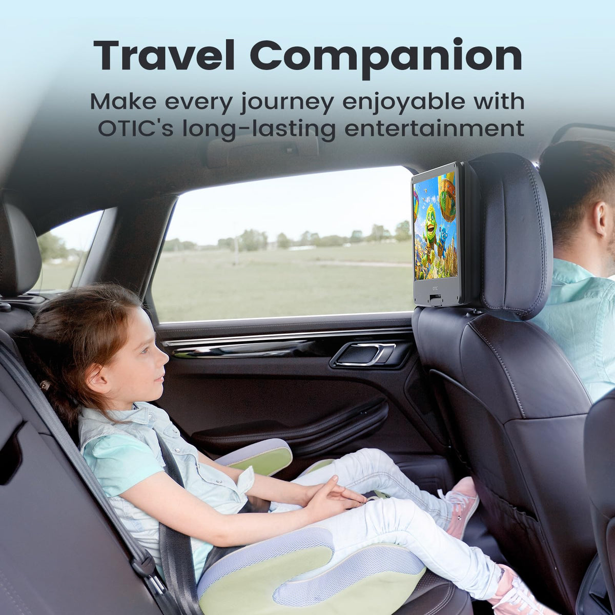 Q: How long does the battery last on the OTIC Portable DVD Player?A: The OTIC Portable DVD Player features a high-capacity 2500mAh rechargeable battery that provides up to 3-5 hours of uninterrupted video playback. This makes it ideal for long road trips or outdoor family outings.