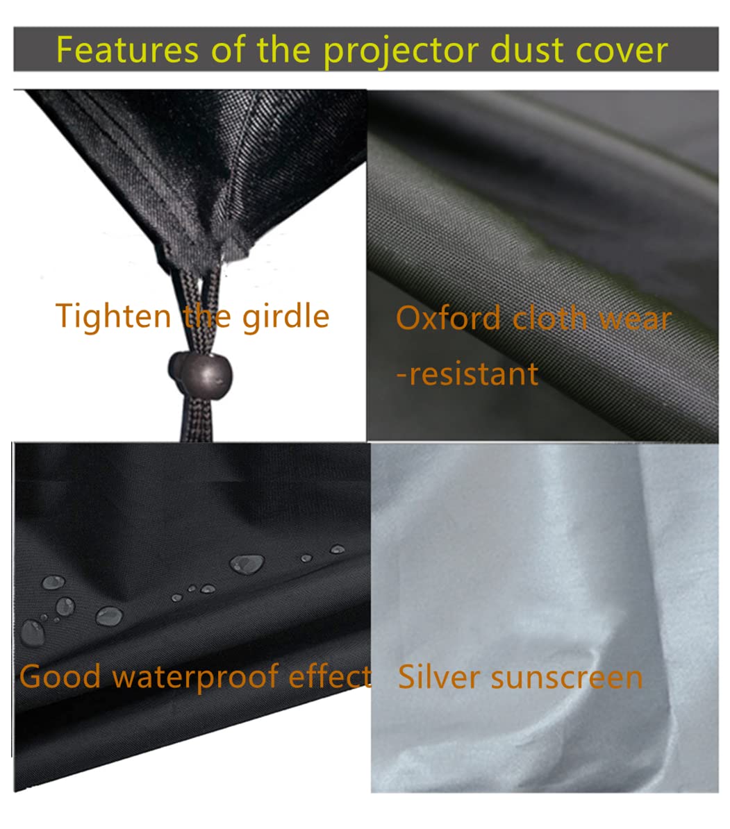 Q: What materials is the projector dust cover made of?A: The projector dust cover is made from durable 420D Oxford cloth, which is water-resistant, UV-resistant, and provides excellent protection against dust and moisture.