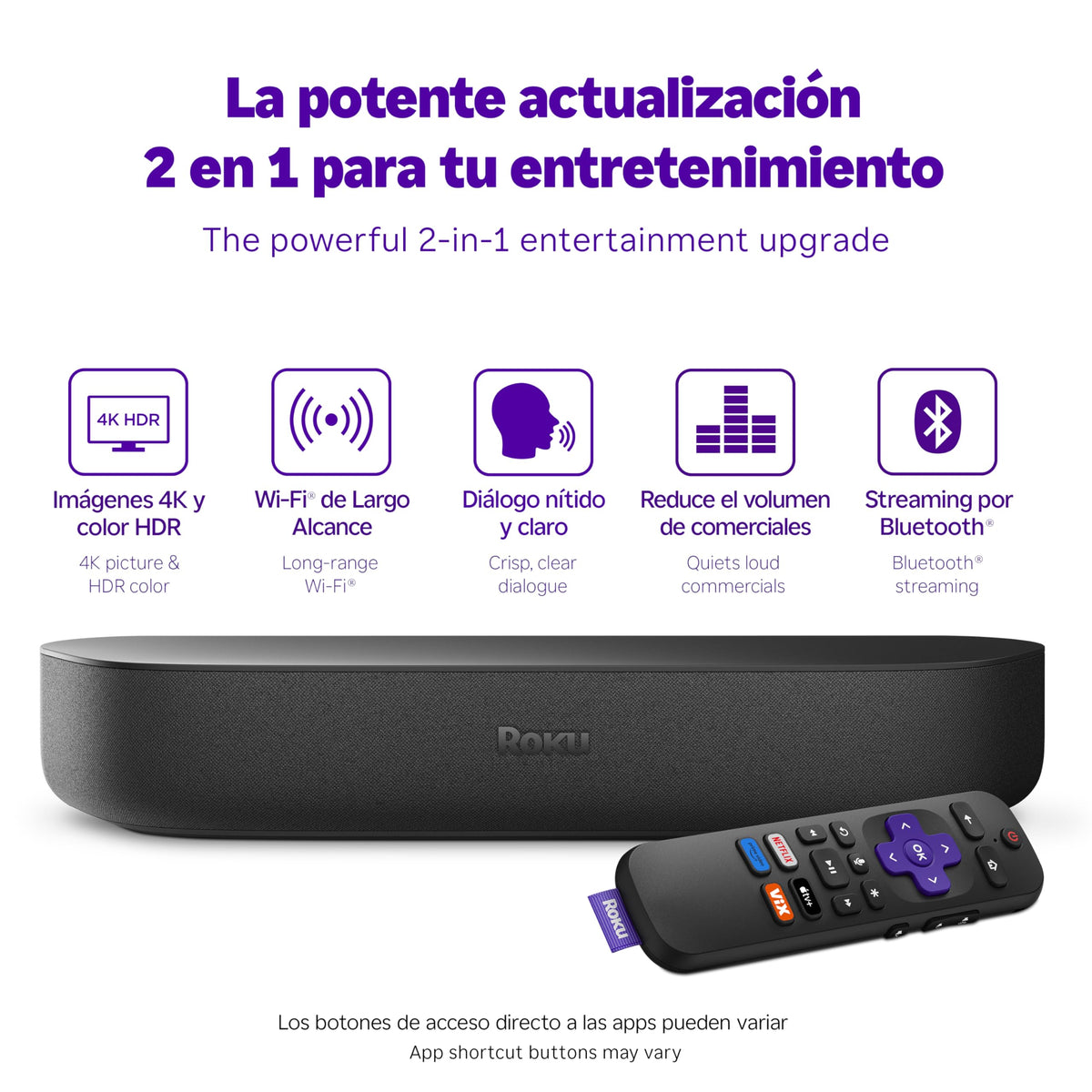 Roku Streambar (Spanish Edition) | 4K Hdr Streaming Device & Premium Roku Soundbar All In One, Roku Voice Remote, Free & Live Tv, Black