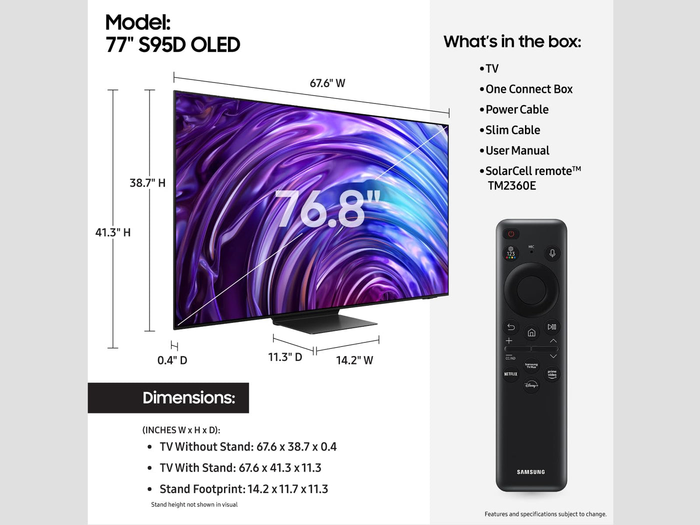 Samsung 77 Inch Class Oled 4K S95D Series Hdr Pro Smart Tv W/Dolby Atmos, Object Tracking Sound+, Motion Xcelerator, Real Depth