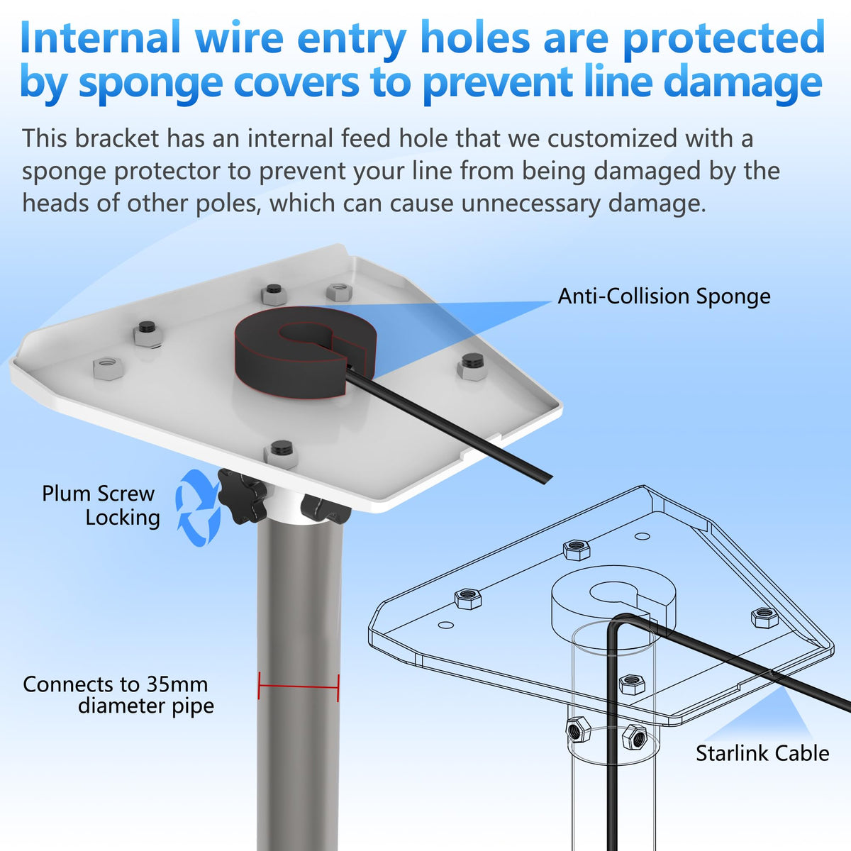 Starlink Gen 3 Mount, Starlink Short Wall Mounting Kit, Pole Mount, Roof Mount, Starlink Gen 3 Pole Plate Bracket Compatible Wit