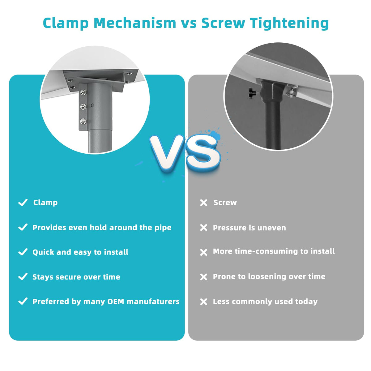 Q: What makes this Starlink mount different from other mounts on the market?A: This Starlink mount utilizes a robust clamp design instead of screws, significantly enhancing strength and stability. It is crafted with advanced robotic welding and has passed a rigorous 1000-hour corrosion test, ensuring superior performance and reliability.