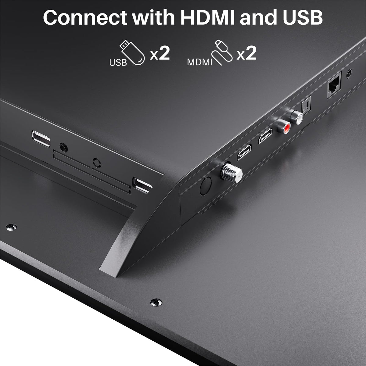 Q: Is the SYLVOX Smart RV TV compatible with external devices?A: Yes, the SYLVOX Smart RV TV includes multiple input options, such as 2 HDMI ports and 2 USB ports, allowing you to connect various external devices like gaming consoles, DVD players, and USB drives. This versatility makes it easy to expand your entertainment options.