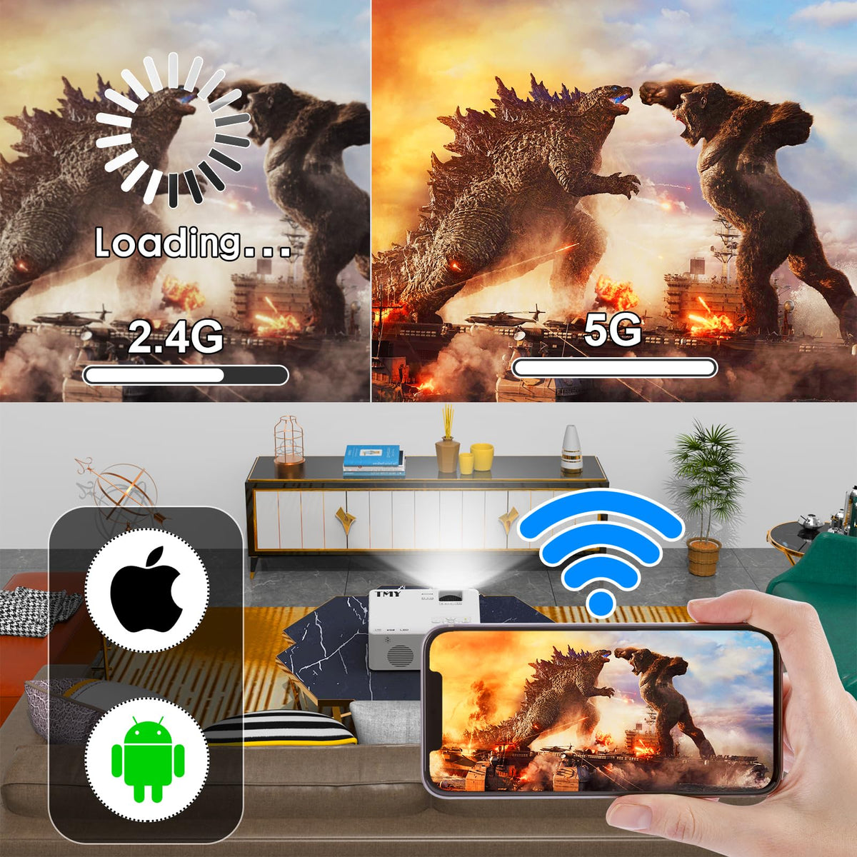 Tmy 5G Wifi Projector With Bluetooth 5.1, Hd Movie Projector, 1080P Supported Mini Projector, Portable Outdoor Projector, Compatible With Tv Stick, Phone, Computer, Hdmi, Usb, Av