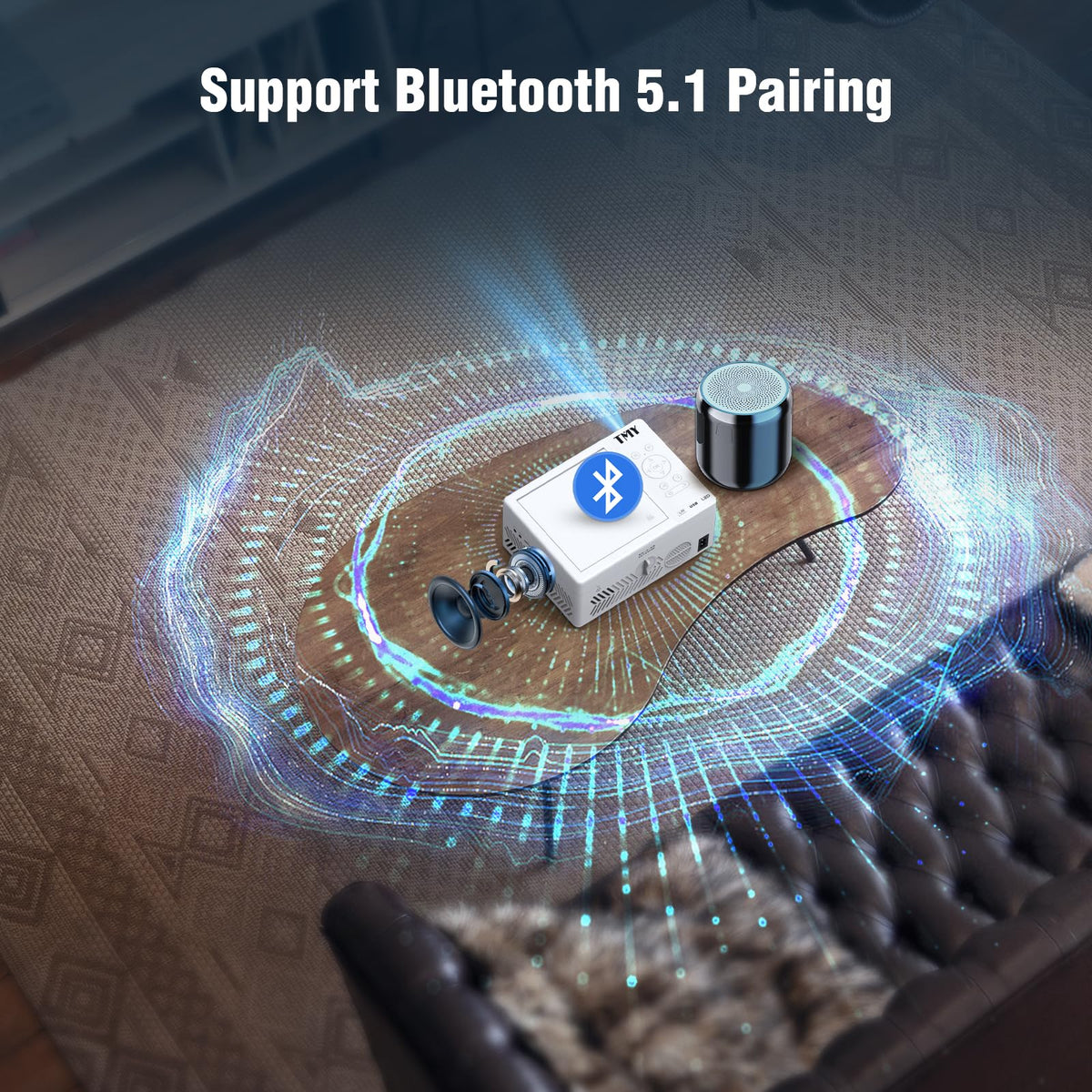 Bluetooth 5.1 Support & Upgraded Speaker: Equipped with a built-in upgraded speaker, this projector delivers a rich audio experience. Thanks to Bluetooth 5.1 technology, audio synchronization is quicker and more stable, allowing you to connect to your favorite Bluetooth speakers or headphones effortlessly.