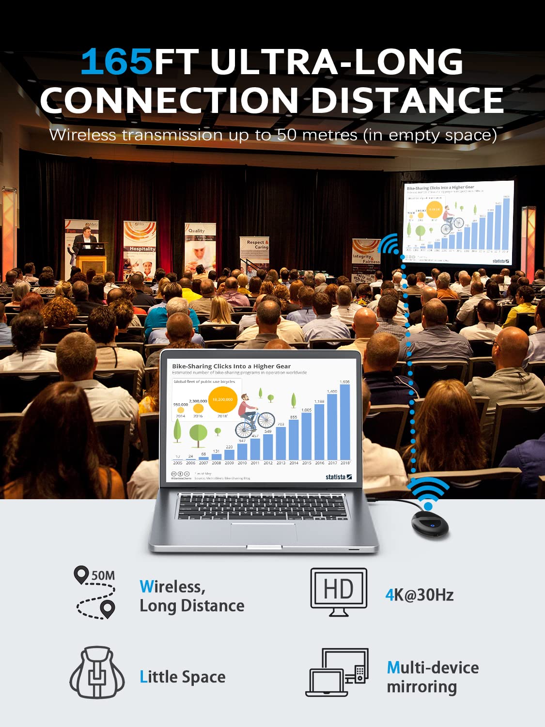 Aimibo Hdmi Wireless Transmitter And Receiver 4K, Usb C & Hdmi Dual Transmit Ports, Hdmi & Vga Dual Screens, 2.4/5Ghz Smooth Video/Audio For Mac, Cable Box, Samsung Phone,165Ft