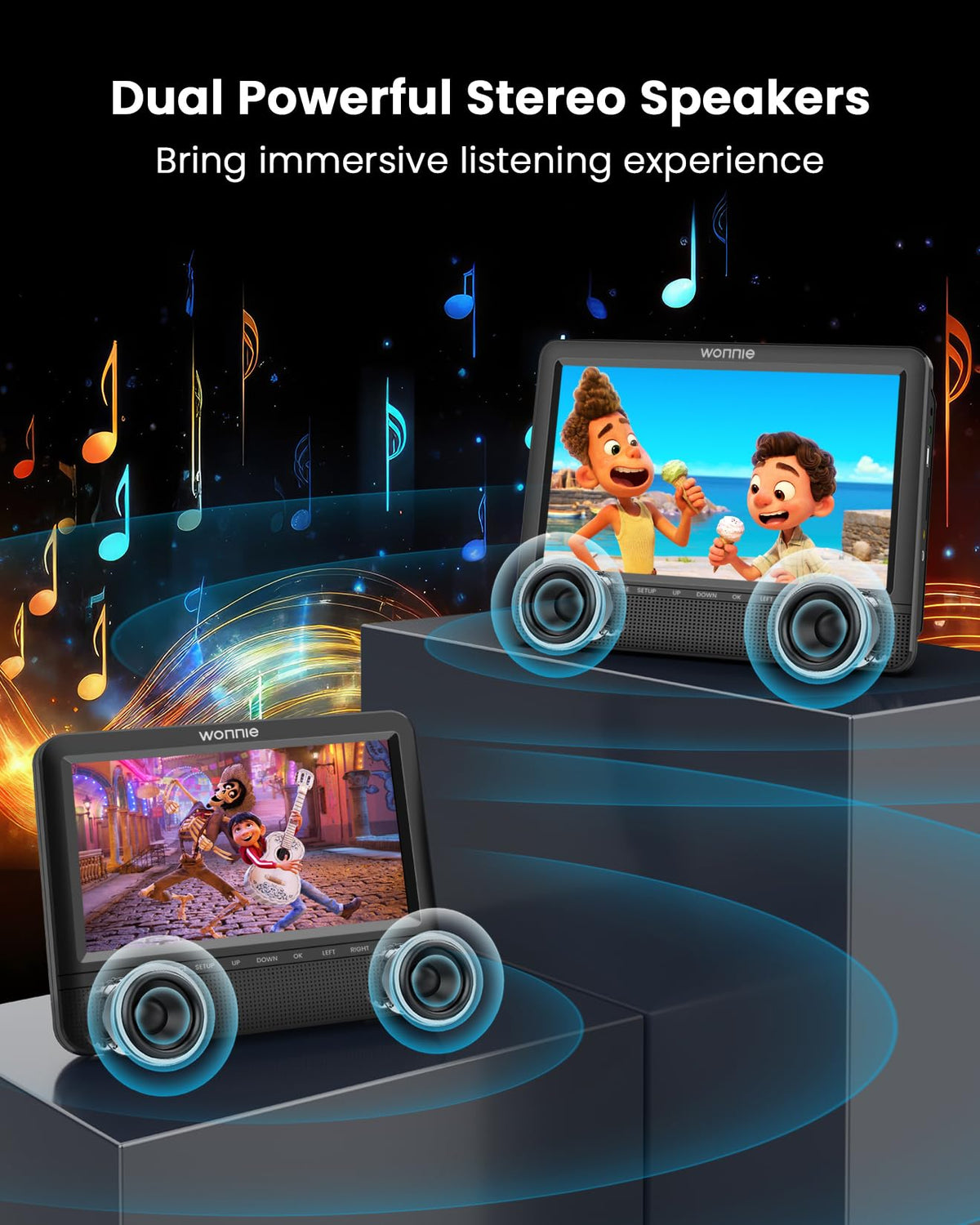 Wonnie 7.5'' Car Dvd Player, Portable Dvd Player For Car Play The Same Or Two Different Movies With Headrest Strap, Support Last Memory, Av Out & In,Usb/Sd/Sync Tv, All Regions Support