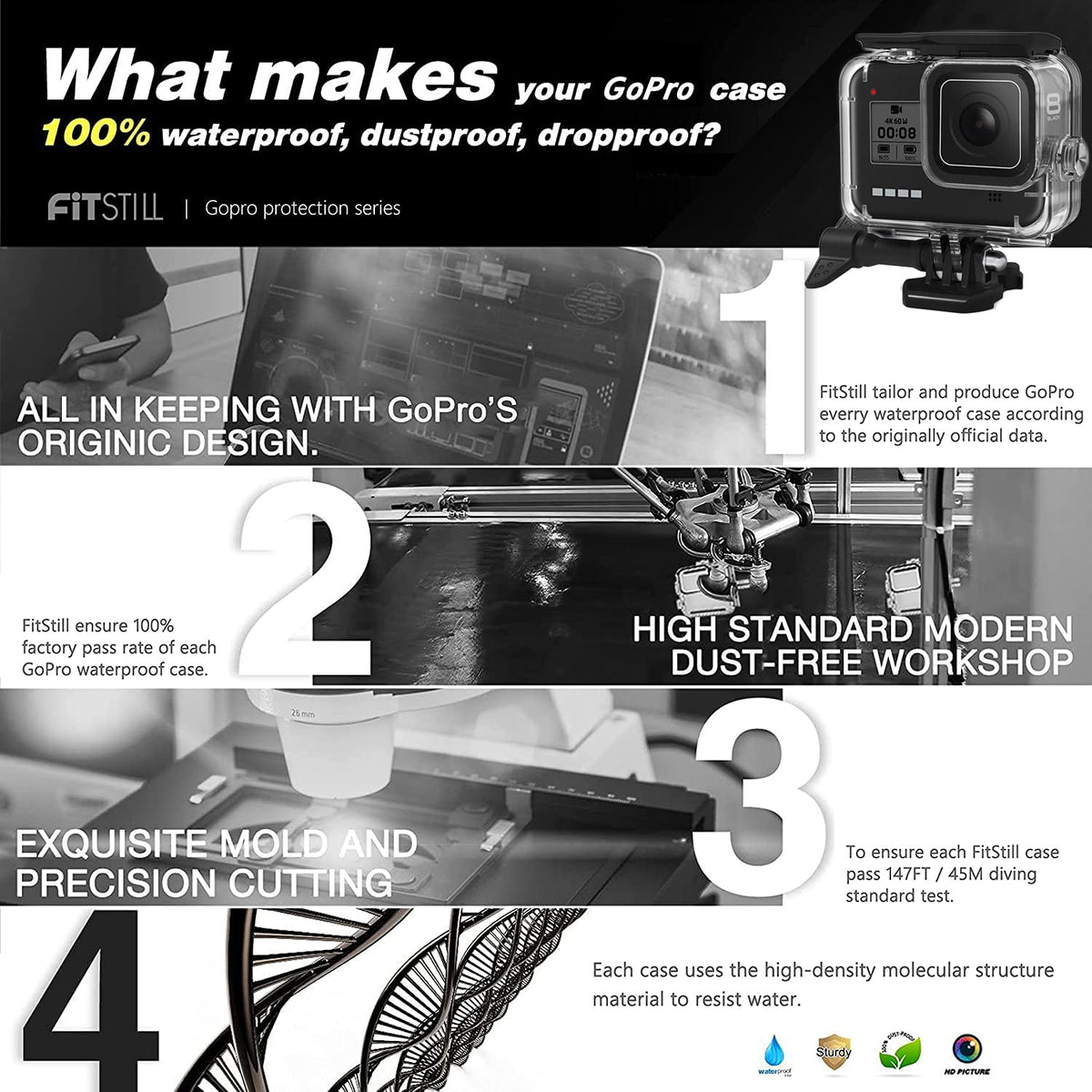 Fitstill Waterproof Case For Go Pro Hero 8 Black,60M/196Ft Protective Underwater Dive Housing Shell With Bracket Accessories For