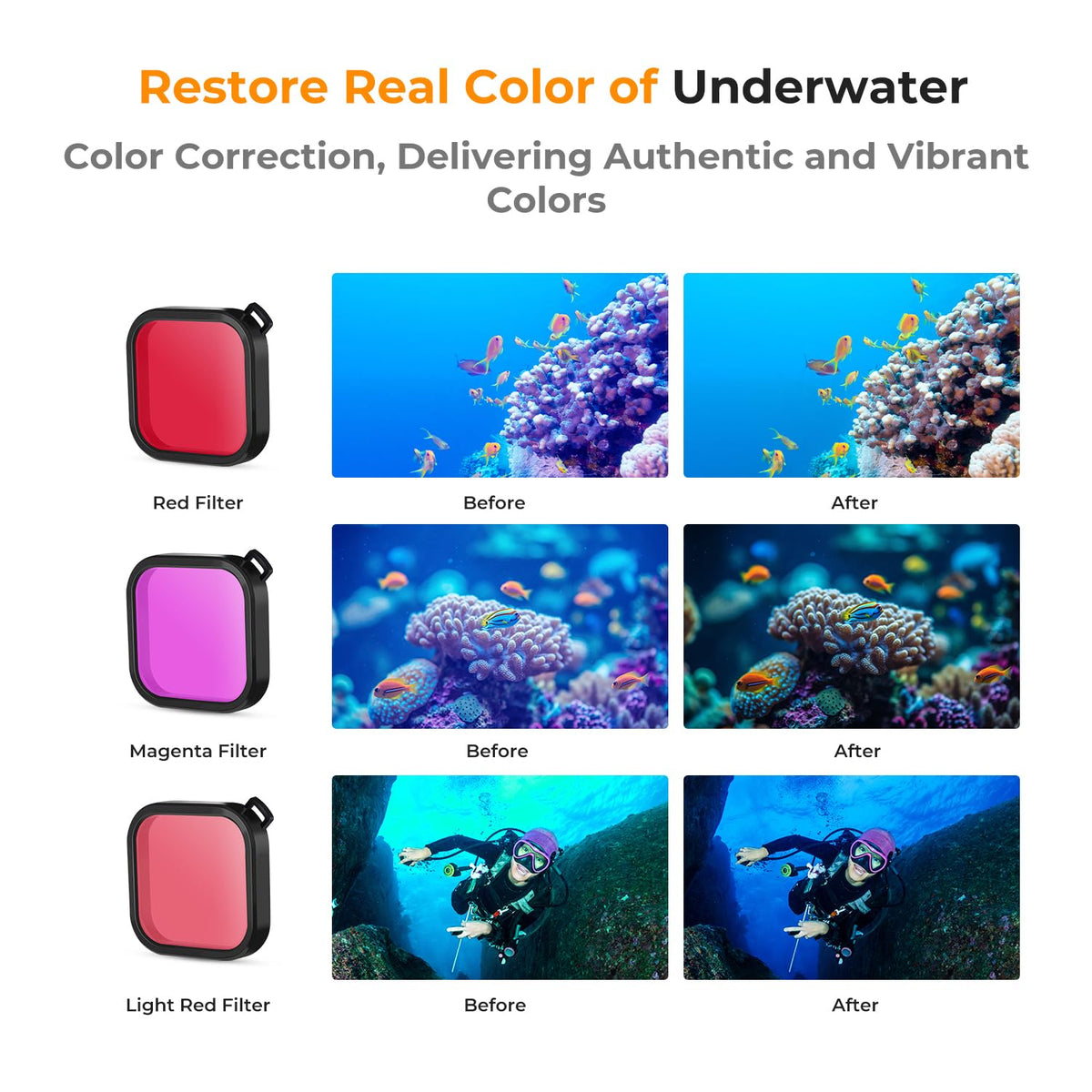Q: Can I use the dive filters with any other cases?A: No, the dive filters included in the kit are specifically designed to be used with the K&F Concept Waterproof Case to ensure optimal performance and compatibility.