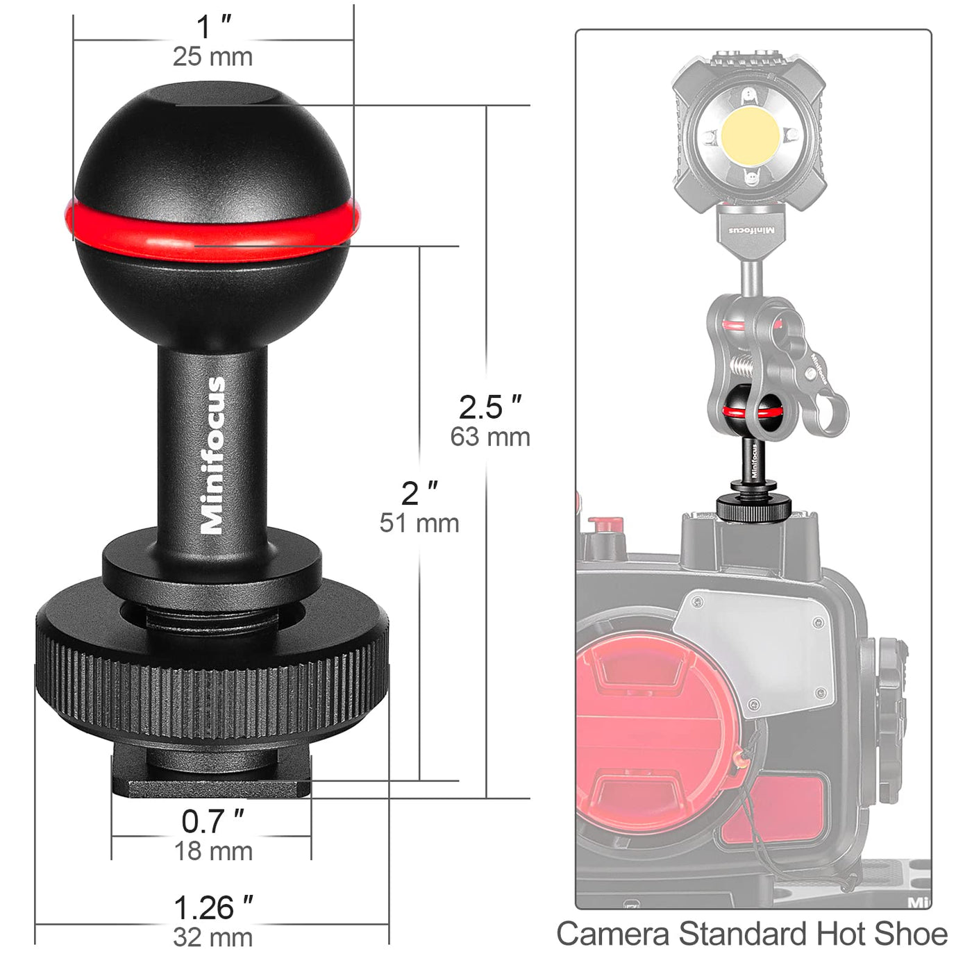 Minifocus 1'' Ball Head Cold Shoe Base Adapter, Universal Ball Joint Bracket With Cold Shoe Base Adapter For Diving Light Underw