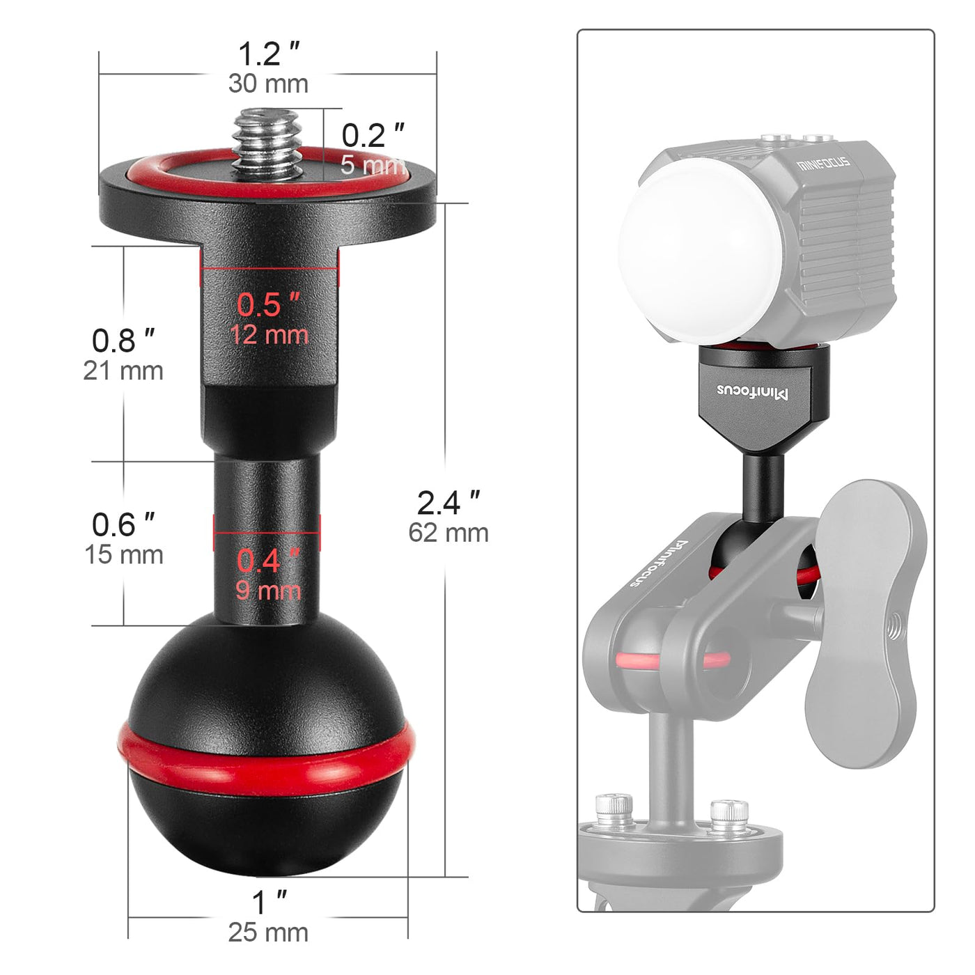 Minifocus 2Pcs 1'' Ball Adapter To 1/4'' 20 Screw, Universal Ball Joint Bracket With 1/4'' Screw Base Adapter For Underwater Cam