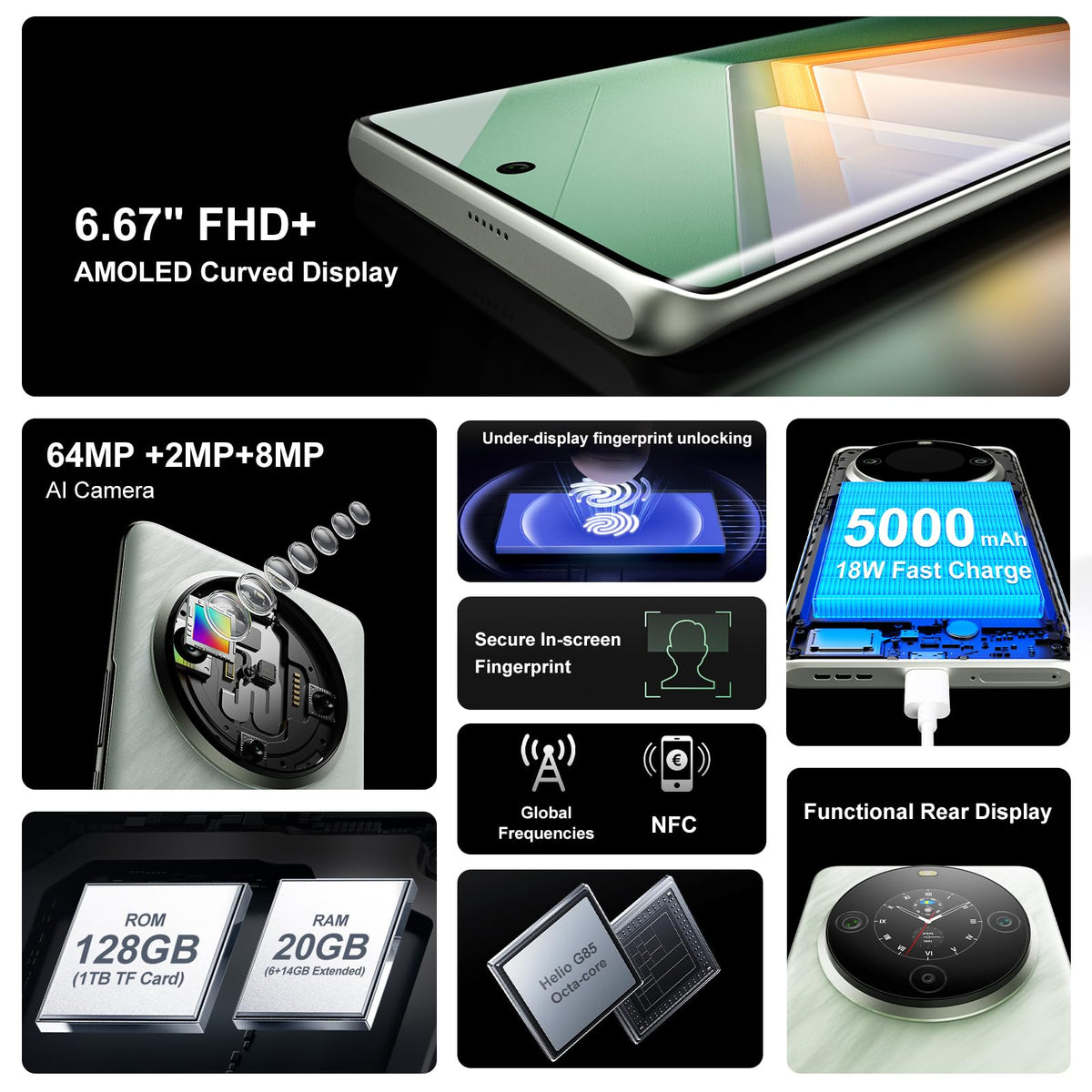 Fossibot S3 Pro Unlocked Smartphone Equibed With 5000Mah Battery 20Gb+128Gb Large Storage 64Mp+8Mp+2Mp Camera Android 14 Os
