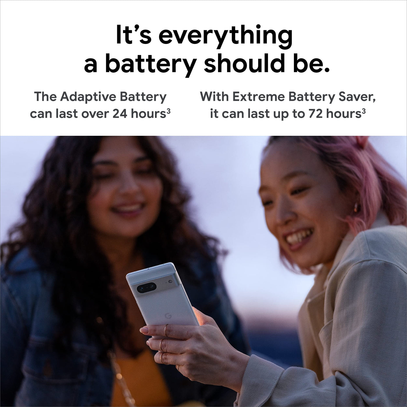 Meet Google Pixel 7. Powered By Google Tensor G2, Its Fast And Secure, With Amazing Battery Life And The Advanced Pixel Camera For Beautifully Authentic, Accurate Photos With Real Tone And Stunning Video With Cinematic Blur. Plus, Its Pixels Most Refined Design, Made With Recycled Materials.[11] Legal [1]Compared To Pixel 6. Speed And Power Efficiency Claims Based On Internal Testing On Pre-Production Devices. [2]Works With All Major Carriers. 5G Service Is Carrier Dependent. Requires A 5G Data Plan (Sold Separately). 5G Service Not Available On All Carrier Networks Or In All Areas. Contact Carrier For Details. 5G Service, Speed, And Performance Depend On Many Factors, Including Carrier Network Capabilities And Signal Strength. Actual Results May Vary. Some Features Not Available In All Areas. Data Rates May Apply. See G.Co/Pixel/Networkinfo For Info. [3]For Over 24 Hours : Estimated Battery Life Based On Testing Using A Median Pixel User Battery Usage Profile Across A Mix Of Talk, Data, Standby, And Use Of Other Features. Average Battery Life During Testing Was Approximately 31 Hours. Battery Testing Conducted On A Major Carrier Network. For Up To 72 Hours : Estimated Battery Life Based On Testing Using A Median Pixel User Battery Usage Profile Across A Mix Of Talk, Data, Standby, And Use Of Limited Other Features That Are Default In Extreme Battery Saver Mode (Which Disables Various Features Including 5G Connectivity). Battery Testing Conducted On A Major Carrier Network. For Both Claims: Battery Testing Conducted In California In Mid 2022 On Pre-Production Hardware And Software Using Default Settings, Except That, For The Up To 72 Hours Claim Only, Extreme Battery Saver Mode Was Enabled. Battery Life Depends Upon Many Factors And Usage Of Certain Features Will Decrease Battery Life. Actual Battery Life May Be Lower. [4]Measured Diagonally; Dimension May Vary By Configuration And Manufacturing Process. Smooth Display Is Not Available For All Apps Or Content. [5]Not Available For All Camera Apps Or Modes. [6]Coming Soon. Restrictions Apply. Some Data Is Not Transmitted Through Vpn. Not Available In All Countries. All Other Google One Membership Benefits Sold Separately. Use Of Vpn May Increase Data Costs Depending On Your Plan. See G.Co/Pixel/Vpn For Details. [7]Earbuds And Watch Sold Separately. Requires Pixel Buds Pro Connected With Fast Pair To A Device With Location History Enabled. Requires Google Pixel Watch To Be Connected To A Compatible Device. [8]Designed To Comply With Dust And Water Protection Rating Ip68 (For Pixel 7 And Pixel 7 Pro) And Ip67 (For Pixel 6A) Under Iec Standard 60529 When Each Device Leaves The Factory But The Device Is Not Water Or Dust Proof. The Accessories Are Not Water Or Dust Resistant. Water Resistance And Dust Resistance Are Not Permanent Conditions And Will Diminish Or Be Lost Over Time Due To Normal Wear And Tear, Device Repair, Disassembly Or Damage. Dropping Your Device May Result In Loss Of Water/Dust Resistance. Liquid Damage Voids The Warranty. See G.Co/Pixel/Water For Details. [9]Requires Google Photos App. Magic Eraser May Not Work On All Image Elements. [10]Some Third Party Apps And Data May Not Be Transferred Automatically. Visit G.Co/Pixel/Copydatahelp For Information. [11]Recycled Materials Are Approximately 19% Of Phone Based On Weight. [12]Not Available In All Languages Or Countries. Not Available On All Media Or Apps. See G.Co/Pixel/Livetranslate For More Information. Translation May Not Be Instantaneous. [13]Maximum Resolution And Field Of View With Raw Image Files Setting Turned On. Setting Is Turned Off By Default. See G.Co/Pixel/Photoediting For More Information. [14]Storage Specifications Refer To Capacity Before Formatting. Actual Formatted Capacity Will Be Less. [15]Unblurring May Not Work On All Photos Or Videos With Faces. [16]Requires Compatible Smart Device. [17]The Google One And Youtube Premium 3-Month Trial Offers Are Available To Eligible Users With The