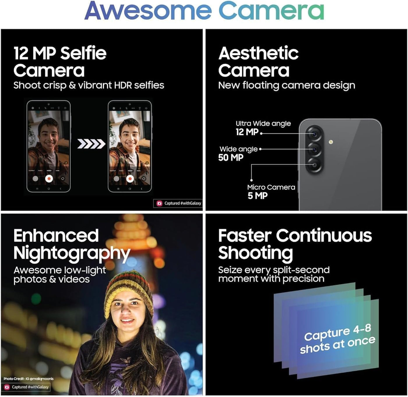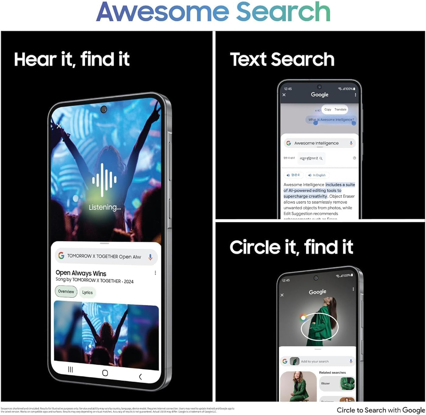 Awesome Intelligence - Circle It, Find It Circle To Search With Google Is Available On Galaxy A56 5G. Just Circle, Highlight Or Tap An Object Or Text Onscreen To Get Google Search Results. Turn Photos Into Masterpieces Object Eraser Removes Unwanted Distractions In The Background Will Be Recognized, Removed And Filled In To Make A Flawless Photo. Capture Memories In Great Detail Get Excellent Photos And Videos With The Upgraded 50 Mp Camera On Galaxy A56 5G. It Identifies The Sky, Skin, Face, Hair And Grass And Enhances The Image Quality For You Instantly. Shoot Awesome Selfie Videos Take Amazing Videos Of Your Adventures And Everyday Life In Super Hdr. The Front Camera Of Galaxy A56 5G Is Enhanced To Get Optimal Colors And Contrast For High Res Selfie Videos. Play To Win With Next-Gen Ap Experience The Powerful Performance Of The Upgraded Octa-Core Processor. Plus, With A Boosted Cooling System And Storage Up To 256 Gb, You Can Multitask, Stream And Play Games More Seamlessly Than Ever. Display For Immersive Gameplay Fully Immerse In Your Favorite Entertainment With A Large 6.7-Inch Fhd+ Super Amoled Display. The 1,200-Nit Vision Booster Adds Clarity For An Awesome Viewing Experience, In Any Lighting. Strong Durability The Solid Metal Frame And Corning Gorilla Glass Victus+ Keep The Awesome Design Of Galaxy A56 5G Looking Great. Plus, With Ip67 Protection, The New Galaxy A Series Is Safe From Dirt And Splashes.