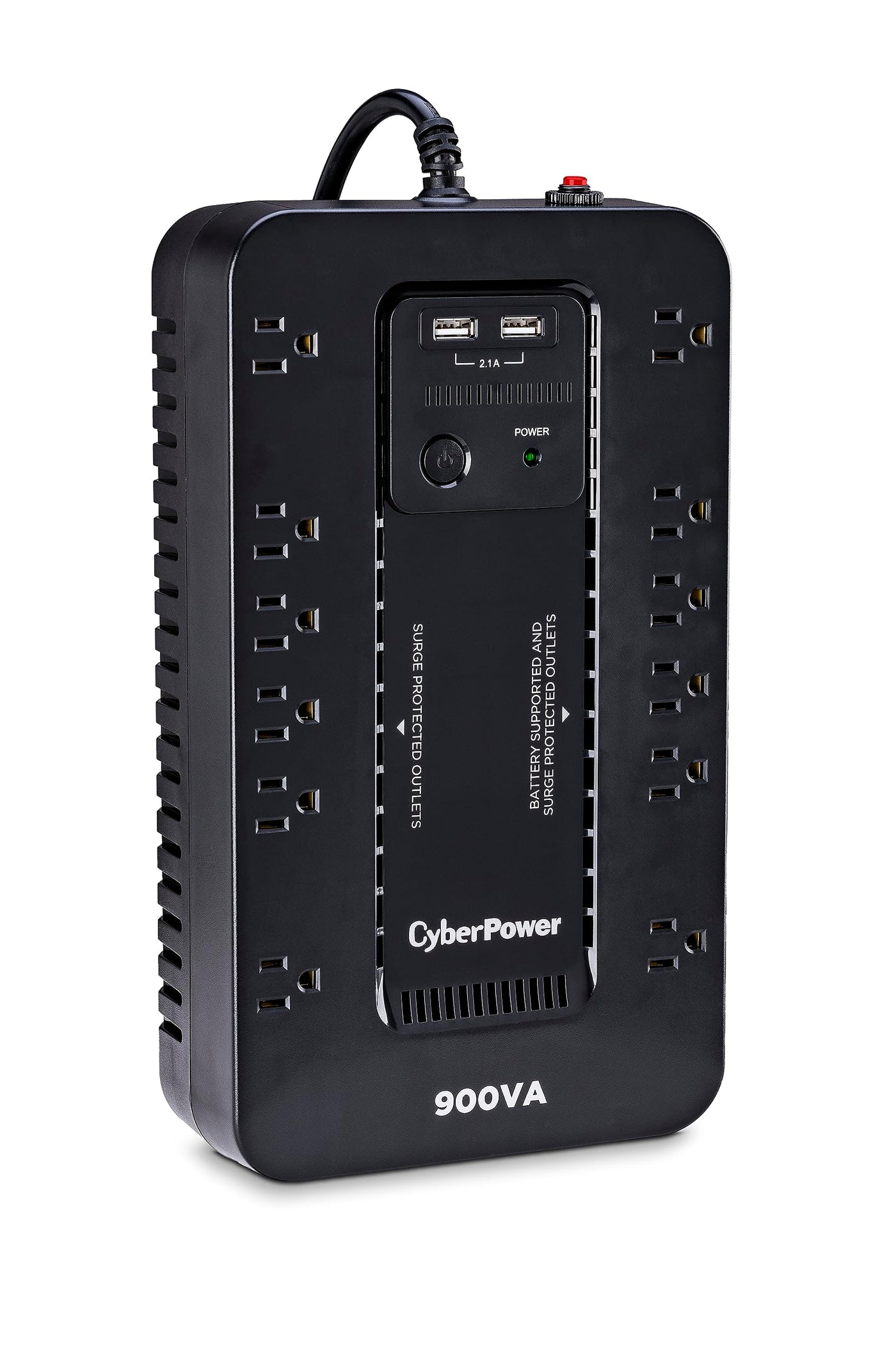 The Cyberpower St900U Uninterruptible Power Supply (Ups) System Provides Battery Backup And Surge Protection For Lightning-Induced Surges And Other Power Events That Can Damage Electronic Equipment. This Unit Delivers Enough Battery Backup To Power Connected Electronics Through Utility Power Failure And Enough Runtime To Perform A Graceful Shutdown To Protect Against The Loss Of Data And Damage To Valuable Electronics During Longer Outages. The St900U Has Two Usb Charging Ports With 2.1 Amp Shared Total Output Which Gives You A Faster Charging Time. This Unit Is Designed To Minimize Noise For A Quieter Work Environment And To Run Efficiently To Reduce Power Consumption. Including A Sleek Design, This Ups Is Perfect For All Your Home Office And Entertainment Needs, Including Computers, Gaming Consoles, And Broadband Routers. With A $125,000 Lifetime Connected Equipment Guarantee And A Three-Year Warranty, You Can Trust Cyberpower Commitment To The Quality Of This Battery Backup With Surge Protection.