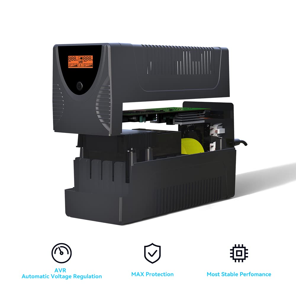 Q: How does the Automatic Voltage Regulation (AVR) feature work?A: The AVR feature stabilizes incoming voltage levels to protect connected devices from voltage fluctuations, ensuring consistent performance and longevity.
