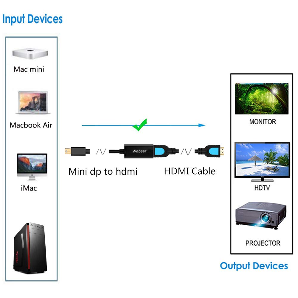 Anbear Mini Displayport To Hdmi Adapter Thunderbolt To Hdmi Cable, Gold-Plated Hdmi To Mini Displayport Adapter Compatible With