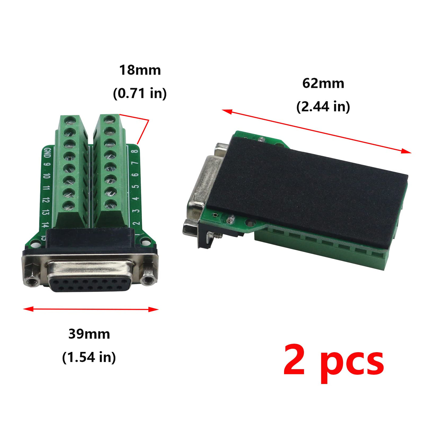 Antrader D-Sub 15Pin Connector Db15 Female Adapter Rs232 To Terminal Board Signal Module 2-Pack
