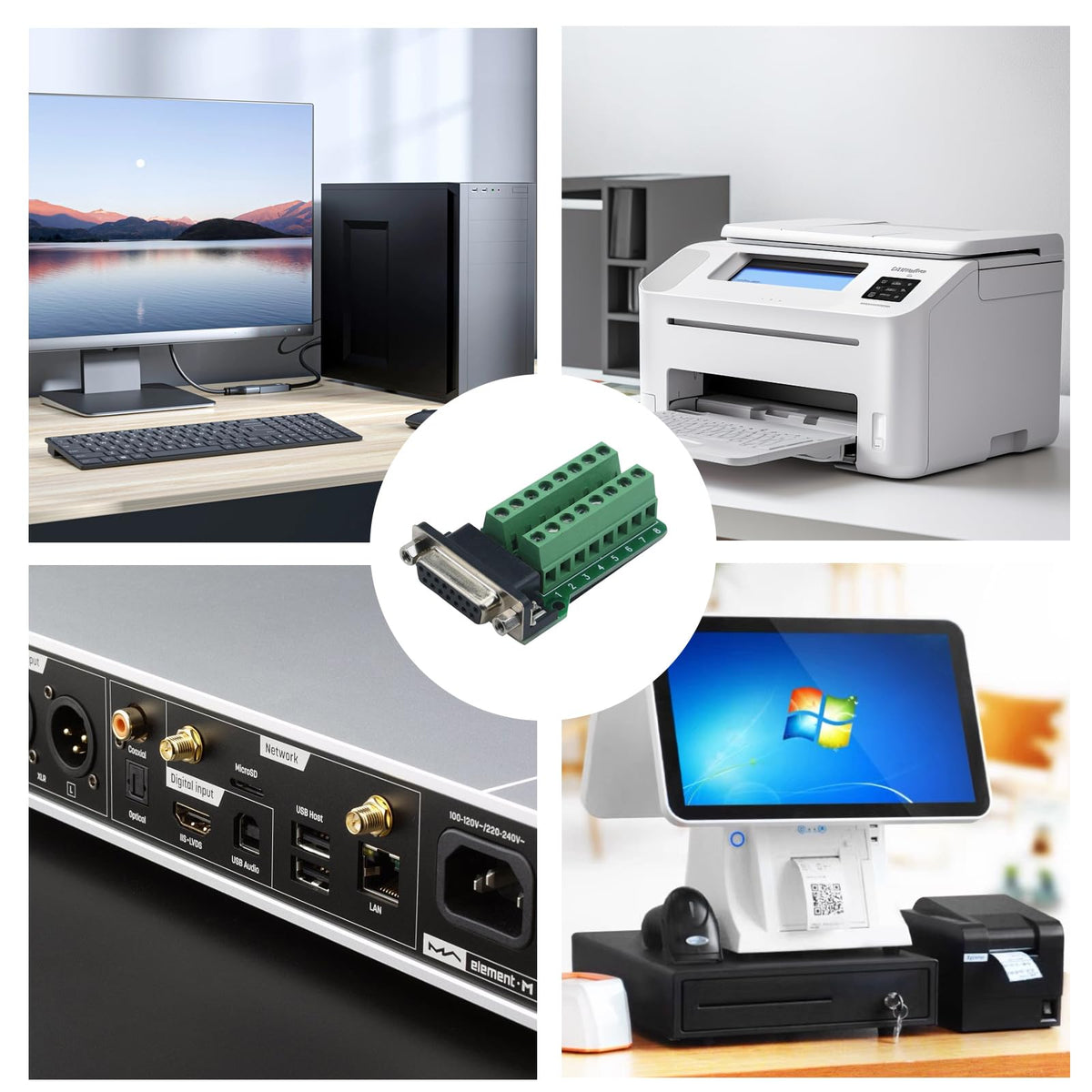 Features: Db15 Female Adapter Plate Connector Signal Module, Rs232 Serial Db15 15-Pin To 7+8 Positions Screw Terminal Block. Connector, Screw Type. Db15 Adapter Terminals To Facilitate The Project, Site Commissioning Equipment. Terminal Pitch 5.08Mm, Screw Hole Diameter 2.5Mm, Need To Use A Slotted Screwdriver Width 2.5Mm Be Removable. Package Content: 2Pcs X Db15 Female Adapter Note: 1.)The Colors May Have Difference As The Different Display, Please Understand. 2.)Please Allow 1-2Mm Error Due To Manual Measurement, Please Make Sure You Do Not Mind Before You Bid.