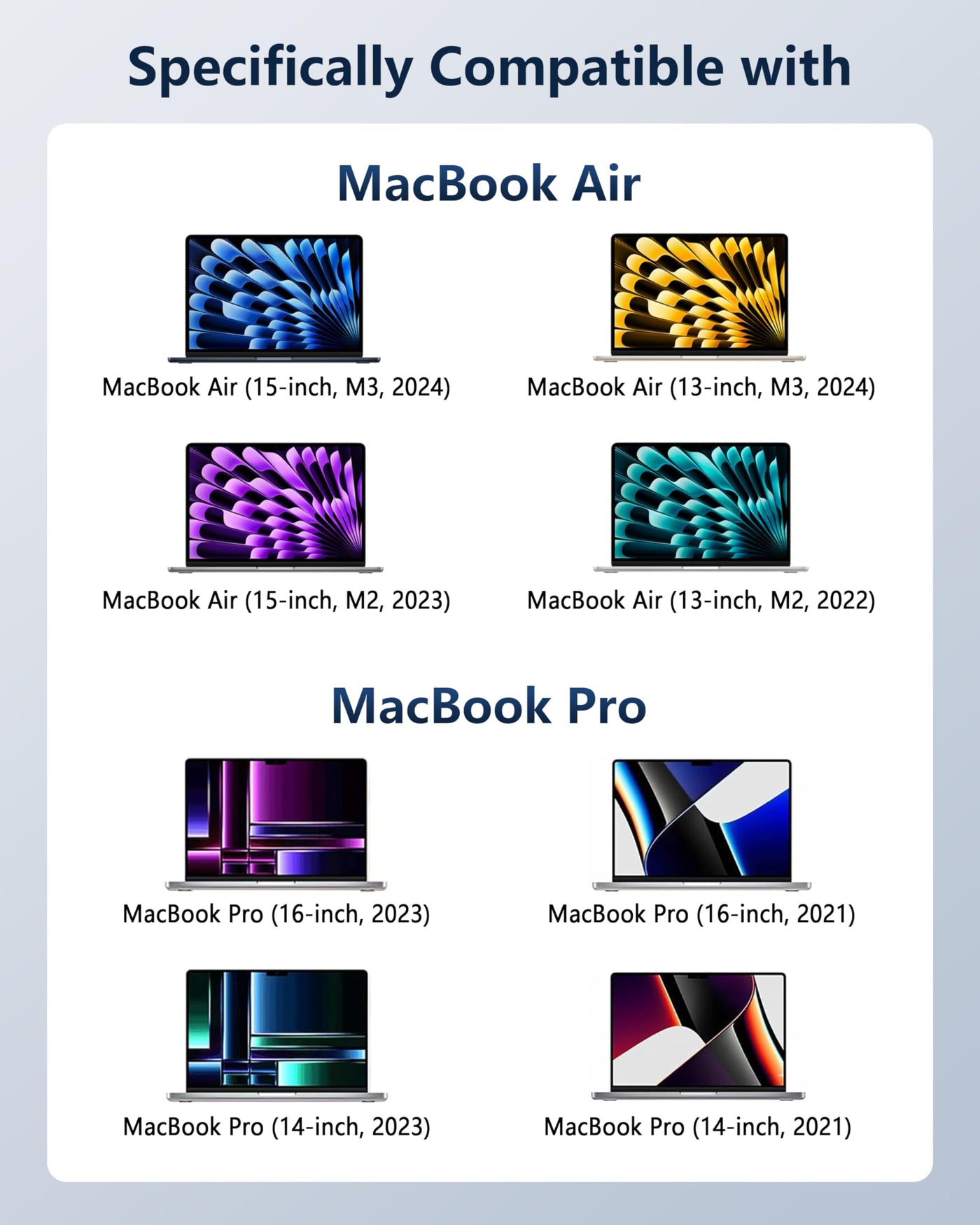 1. This Cable Is Specifically Made For Fast Charging Macbooks: Macbook Pro 14 2021/2023, Macbook Pro 16 2021/2023, Macbook Air 13 M2 2022 And Macbook Air 15 M2 2023. 2. You Can Have Your Macbook Fast Charged With This Magnetic Cable And Power Adapter With Charging Power With 96W And 140W. 3. The Magnetism Design Of One End Will Direct The Cable To Plug To The Charging Port Automatically, And The Strong Magnetism Enables The Charging Fast And Stable. 4. It Is A Good Backup Charging Cable When You Leave Your Original Cable At Home Or Office. 5. The Cable Is 6.6Ft In Length And 1.8 Ounce In Net Weight. It Could Reach Anywhere You Need From The Power Source And Meet Almost All Charging Situations.