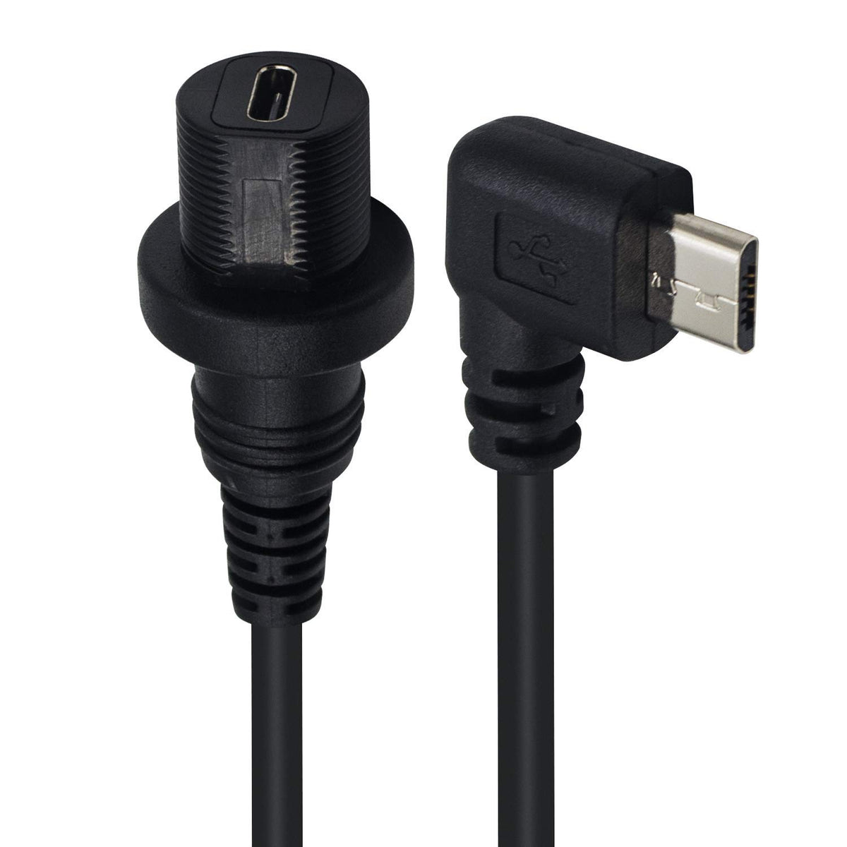 Duttek Micro Usb Panel Mount Cable, Left Angled 90 Degree Micro Usb Mount Extension Dash Flush Cable Male To Female For Car, Boa