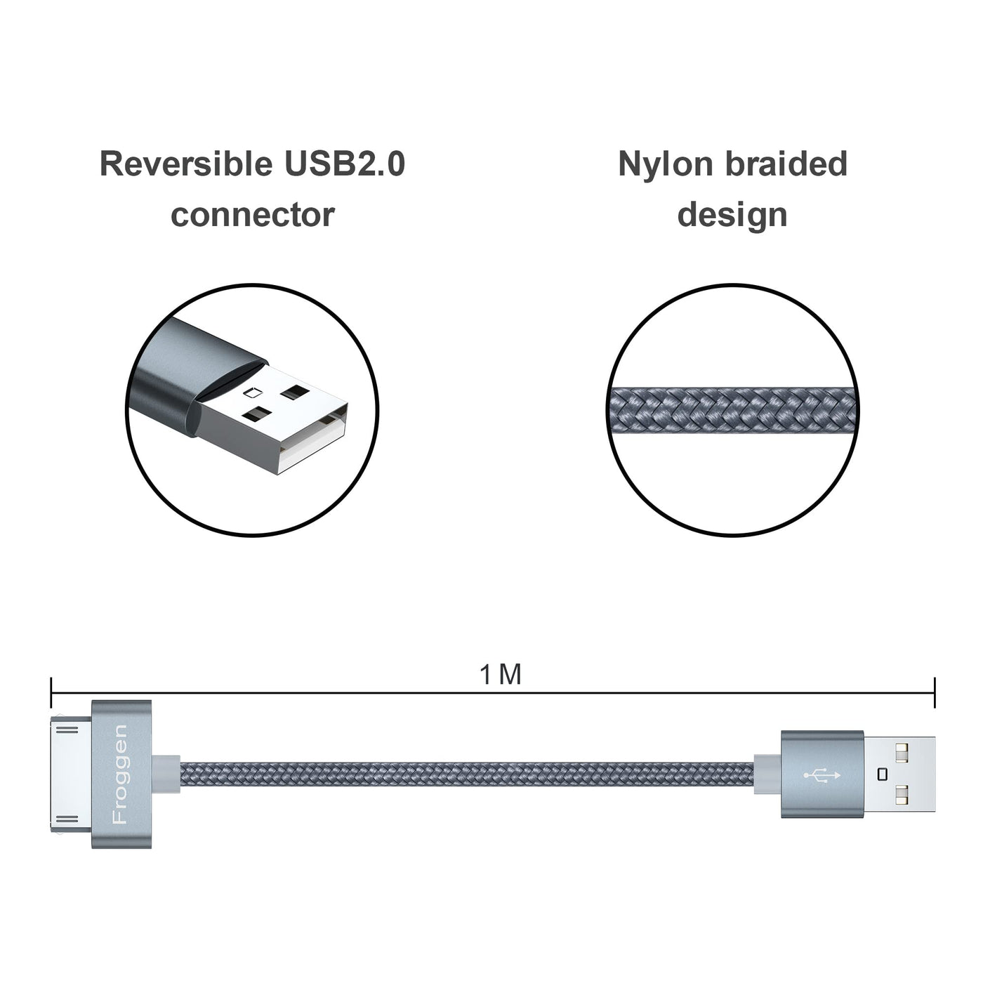 Froggen 30 Pin Usb Sync Charging Cable Compatible With Iphone 4/4S, Iphone 3G/3Gs, I-Pad 1/2/3, I-Pod 3.2 Ft