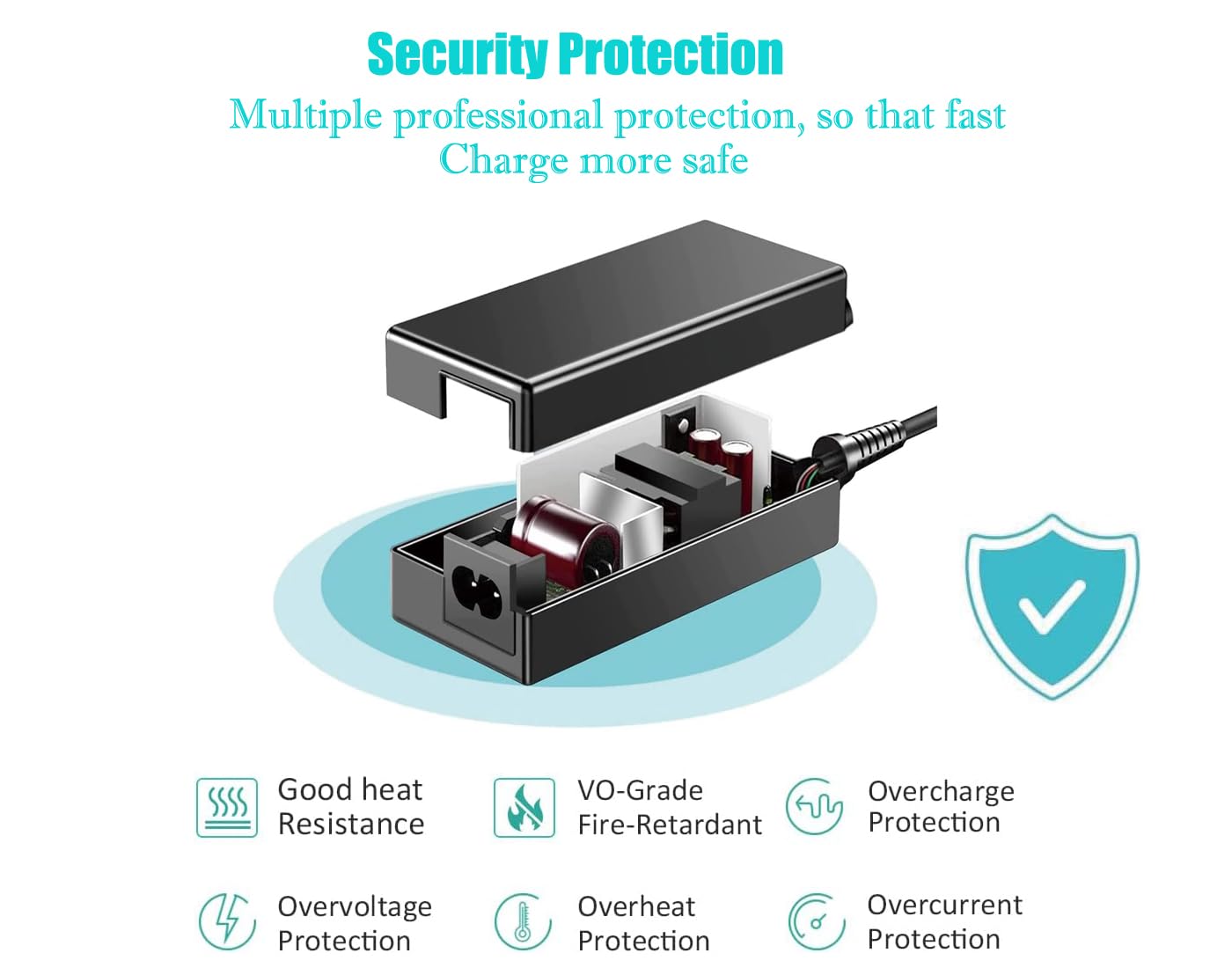 Product Manufacturer Trade Mark: Gep And Authorized Sold By Sunny Tech | Input: 110-240V 50/60Hz Auto-Detect International, Output: Dc19V 65W | Industrial Standard Circuit; Quality New Electronic Components; Over Voltage Protection; Over Current Protection; Short Circuit Protection | Item Includes: 1 Ac Adapter And 1 Power Cord(5 Feet) | Fireproofing Material Cover; Dimensions: 117Mm X 50Mm X 30Mm. Color: Black; Led Light Charging Indication.