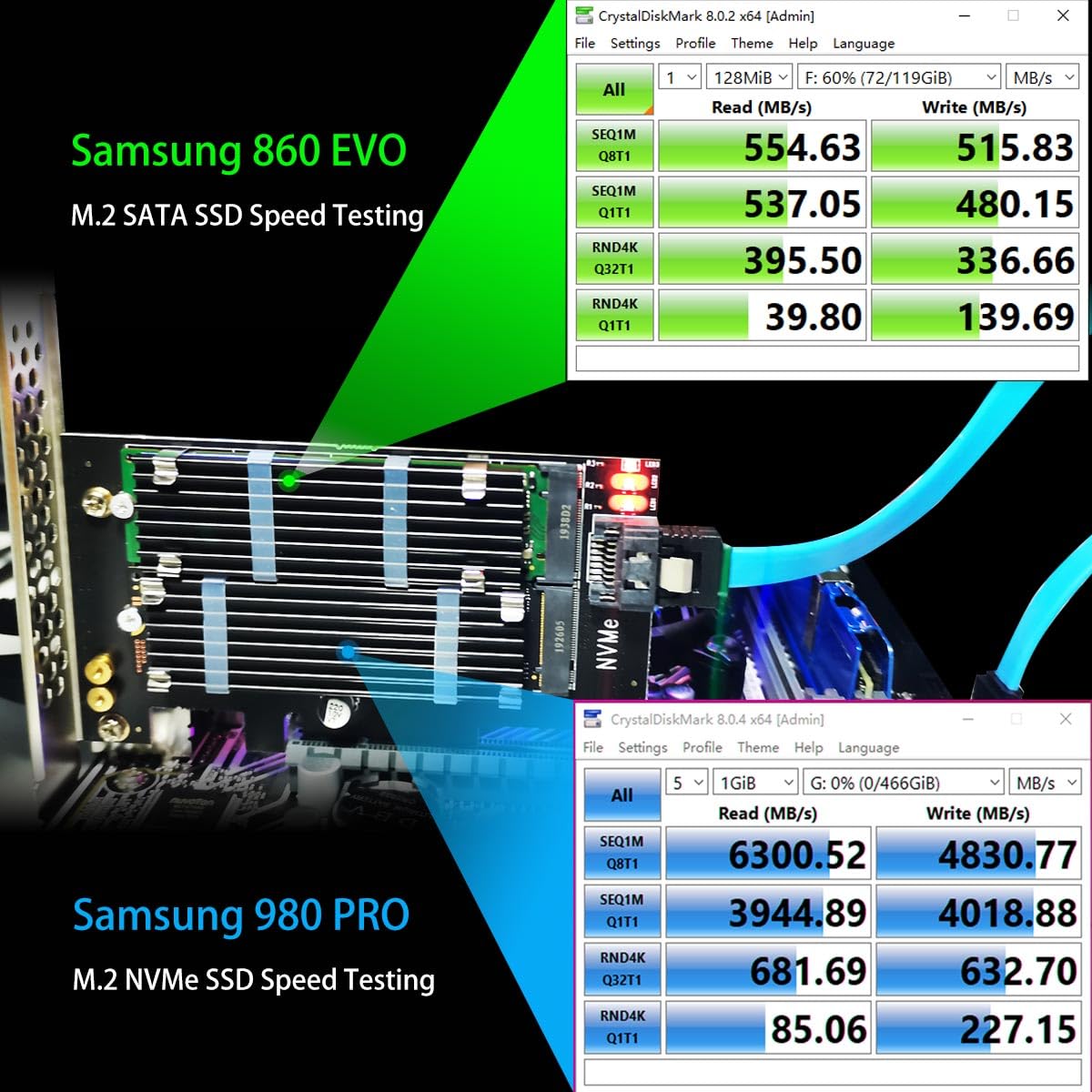 Glotrends Pa12-Hs Dual M.2 Ssd Pcie X4 Adapter With Heatsink For One M.2 Nvme Ssd And One M.2 Sata Ssd, Support Pcie 4.0 Ssd And