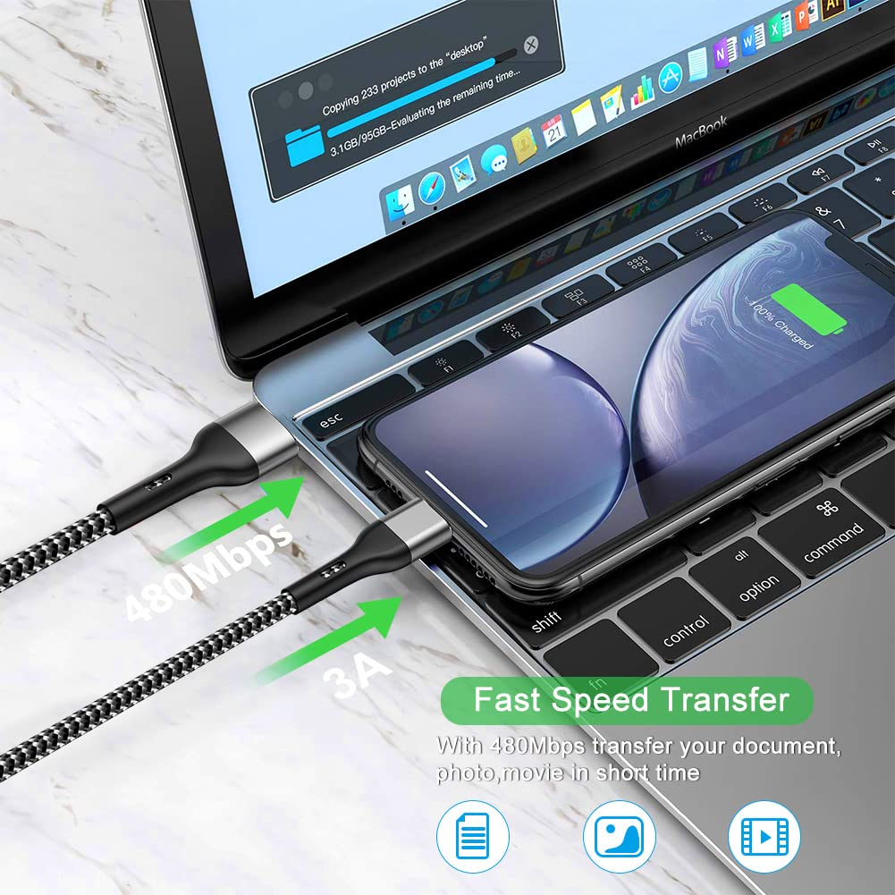 Q: Can I use this cable for data transfer in addition to charging?A: Absolutely! This Lightning cable supports both fast charging and data sync, allowing you to charge your device while transferring data at speeds of up to 480 Mbps.