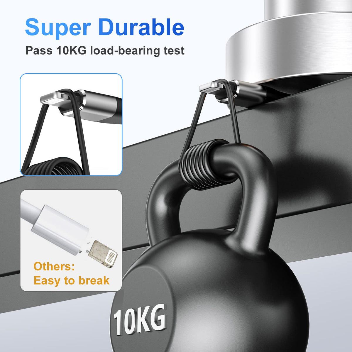Q: How durable is the nylon braided design of this cable?A: The premium nylon braided design is highly durable, making the cable flexible, tangle-free, and resistant to wear and tear, thanks to its double-braided layer.