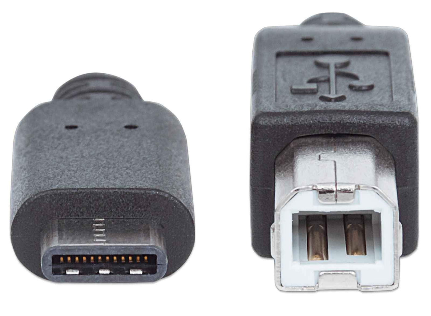 Manhattan Hi-Speed Usb C Device Cable, Usb 2.0, Type-C Male To Type-B Male, 480 Mbps, 1 Meter (3 Feet), Black