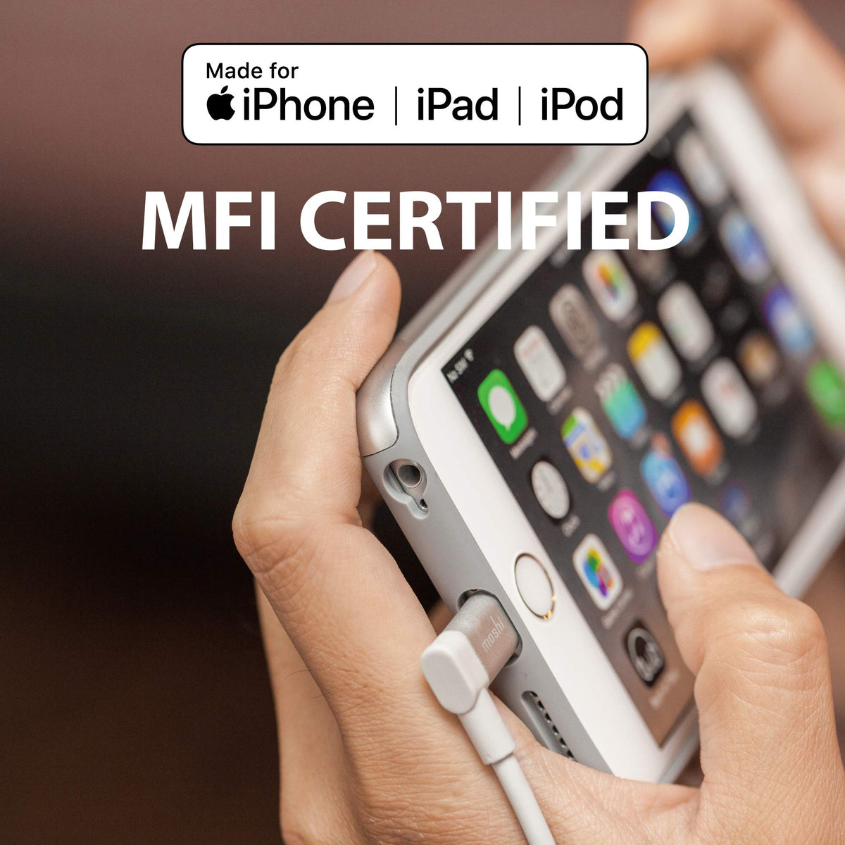 Moshis 90-Degree Lightning To Usb Cable Features A Unique Right-Angle Design That Gives You An Ergonomic Way To Use Your Device As It Charges, While Also Reducing Cable Stress. Its 90-Degree Connector Is Useful When You Want To Hold Your Device Comfortably During Charging, Like When Youre Messaging Friends Or Playing Games. Its Also Ideal For In-Car Use As The 90-Degree Connector Wraps The Cable Closer To Your Device. This Helps Your Cable Stay Neatly Organized While Also Preventing Undue Stress On The Cable/Connector, A Frequent Occurrence When Charging In The Car. Both Ends Of This Certified Lightning Cable Are Encased In Aluminum To Minimize Electromagnetic Interference And Ensure Durability. Use This Cable With Moshis Rewind 2 Wall Charger Or Car Charger Duo For Convenient And Comfortable Charging At Home Or In The Car.