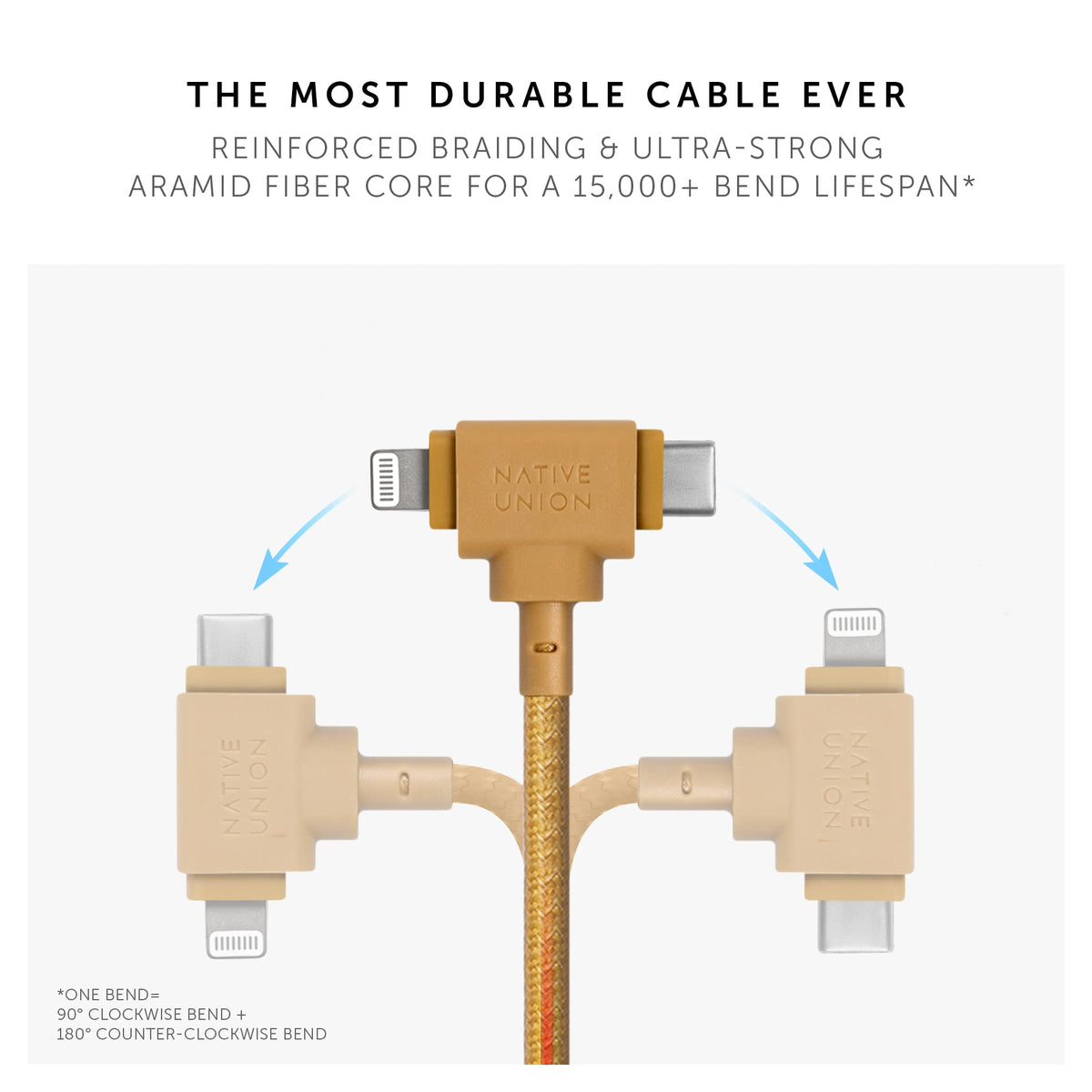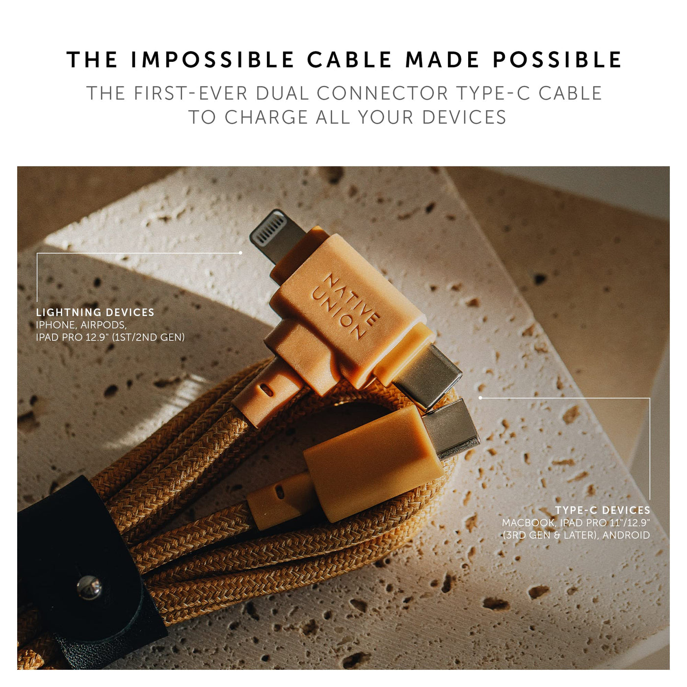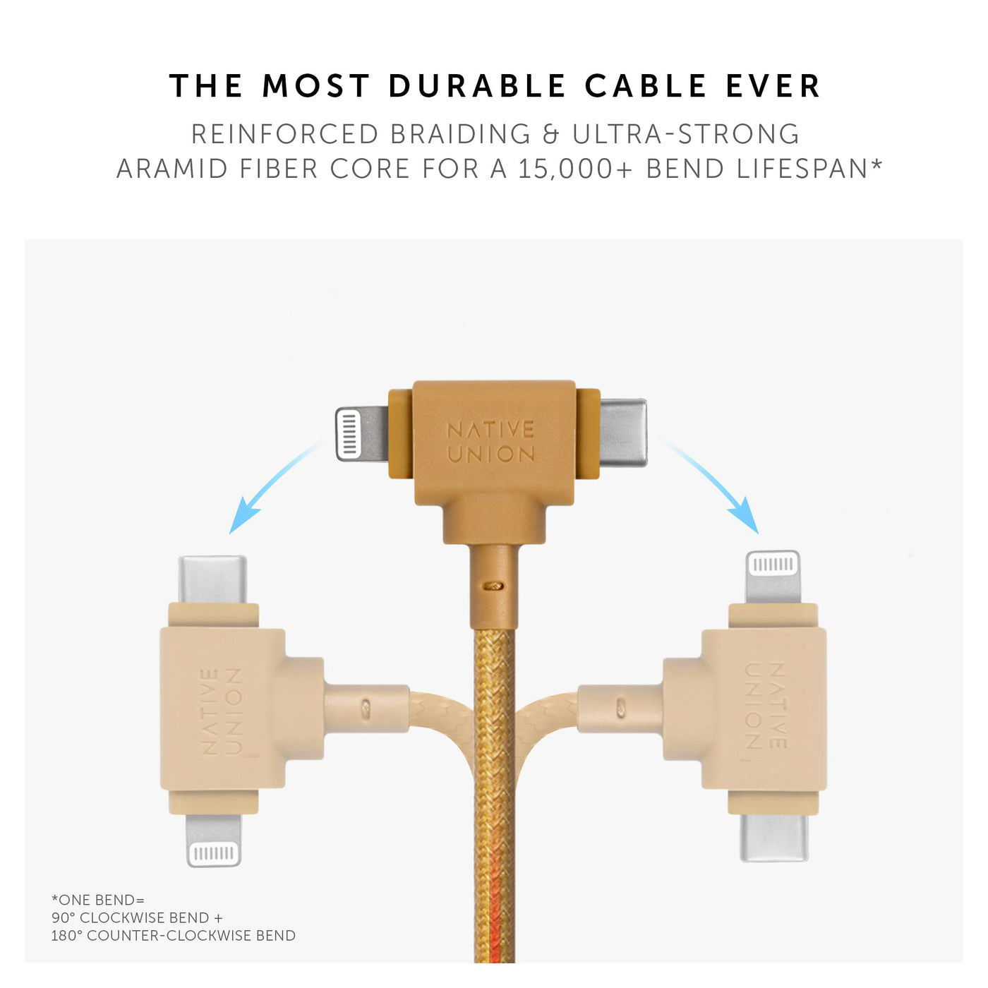Native Union Belt Cable Duo - 5Ft Ultra-Strong Braided Universal Charging Cable - Made With Recycled Materials - 2-In-1 Multi-De