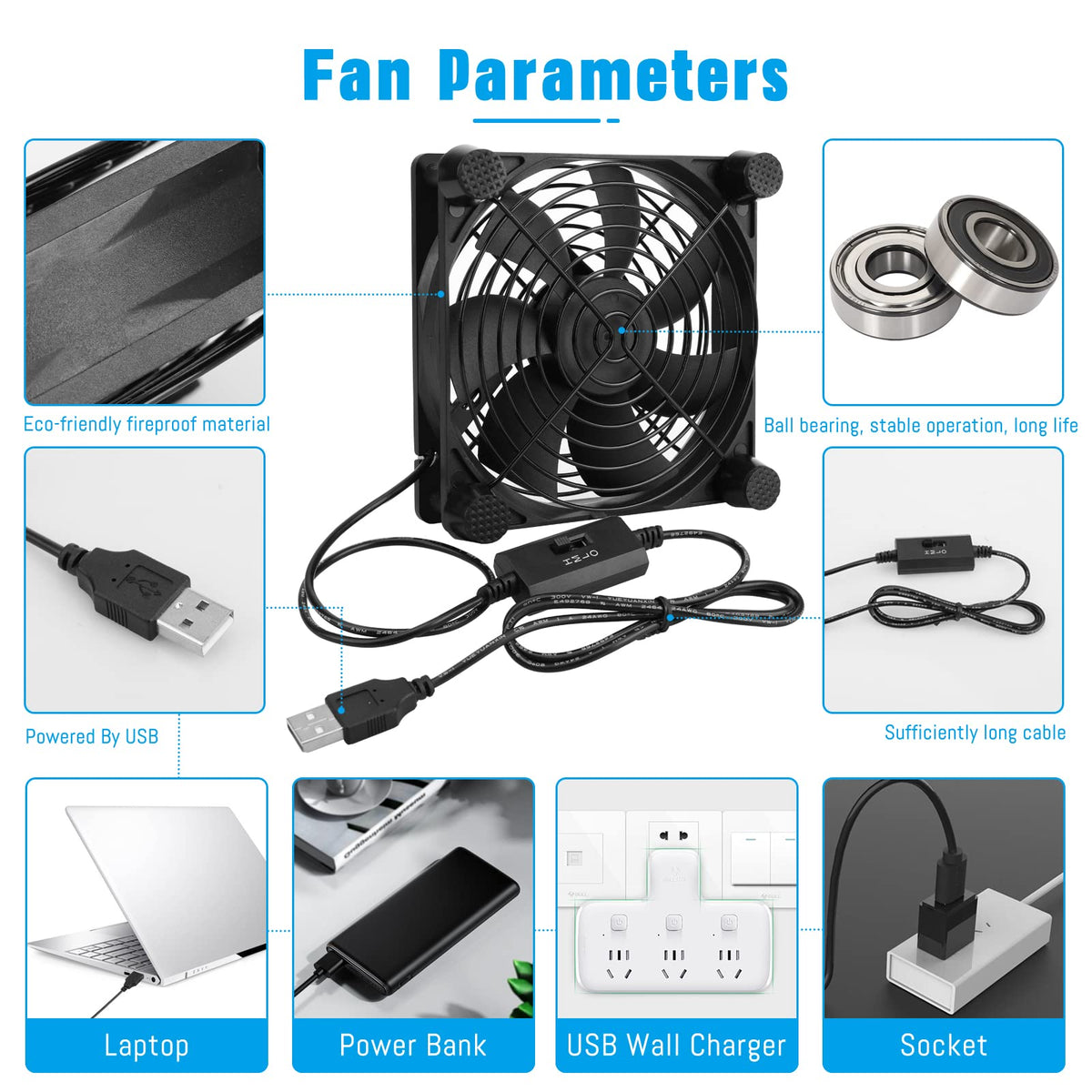 Neukniy Quiet 120Mm Usb Computer Fan Dual Ball Bearing With Speed Controller 5V Powered Fan For Router Modem Xbox Dvr Playstatio